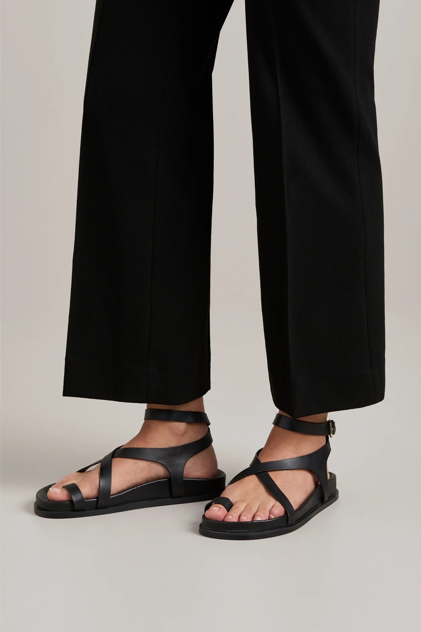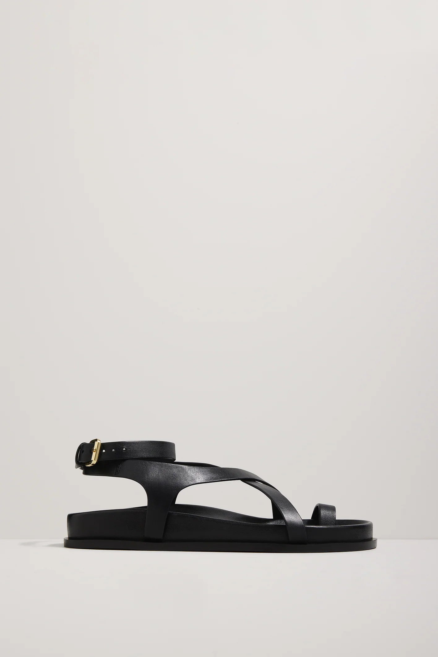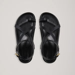 An iteration of our most popular style, the Jalen Slim sits atop our moulded footbed, featuring a toe hold and two criss-cross straps that encase the foot and finish with a soft gold buckle around the ankle.