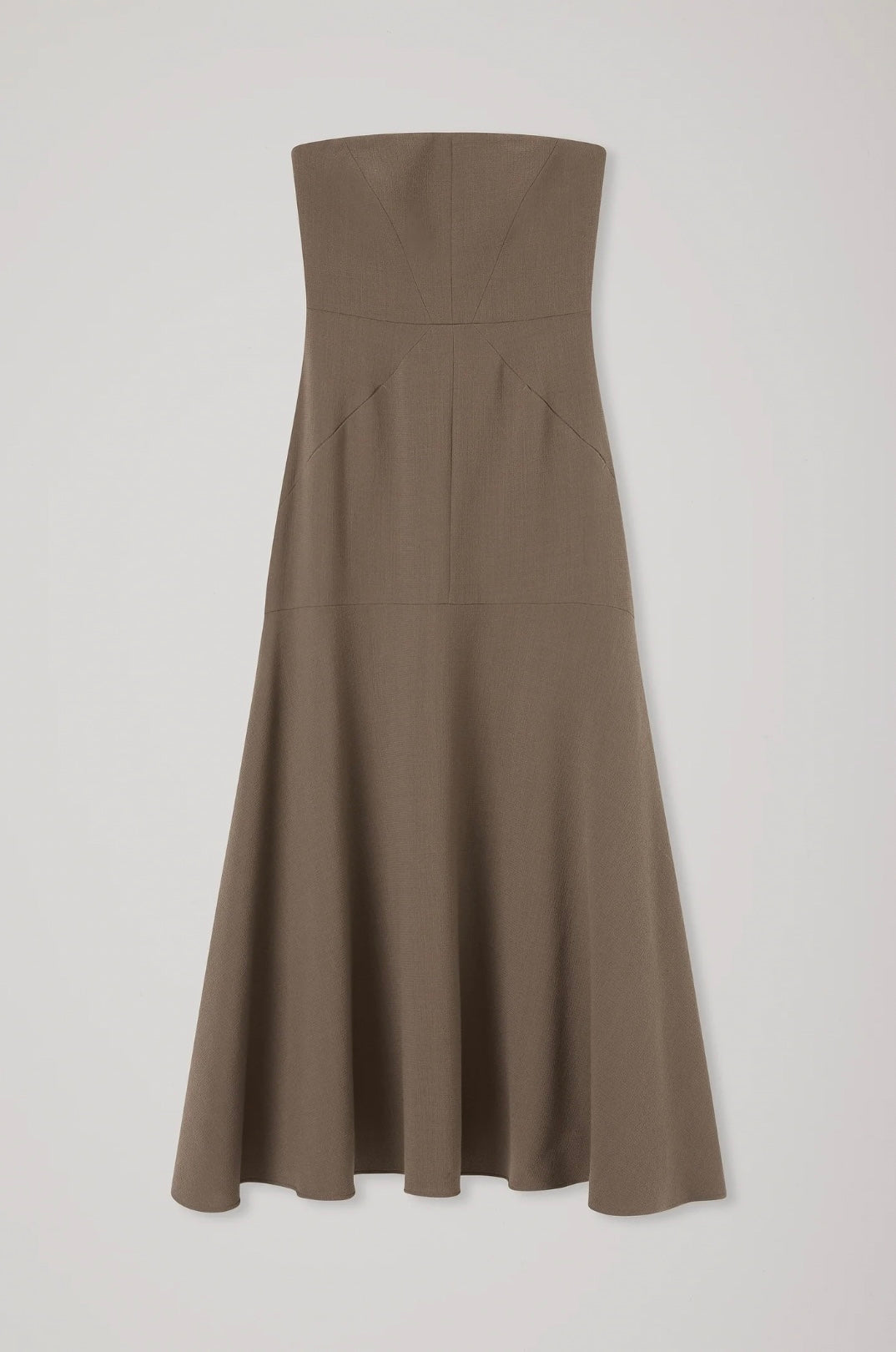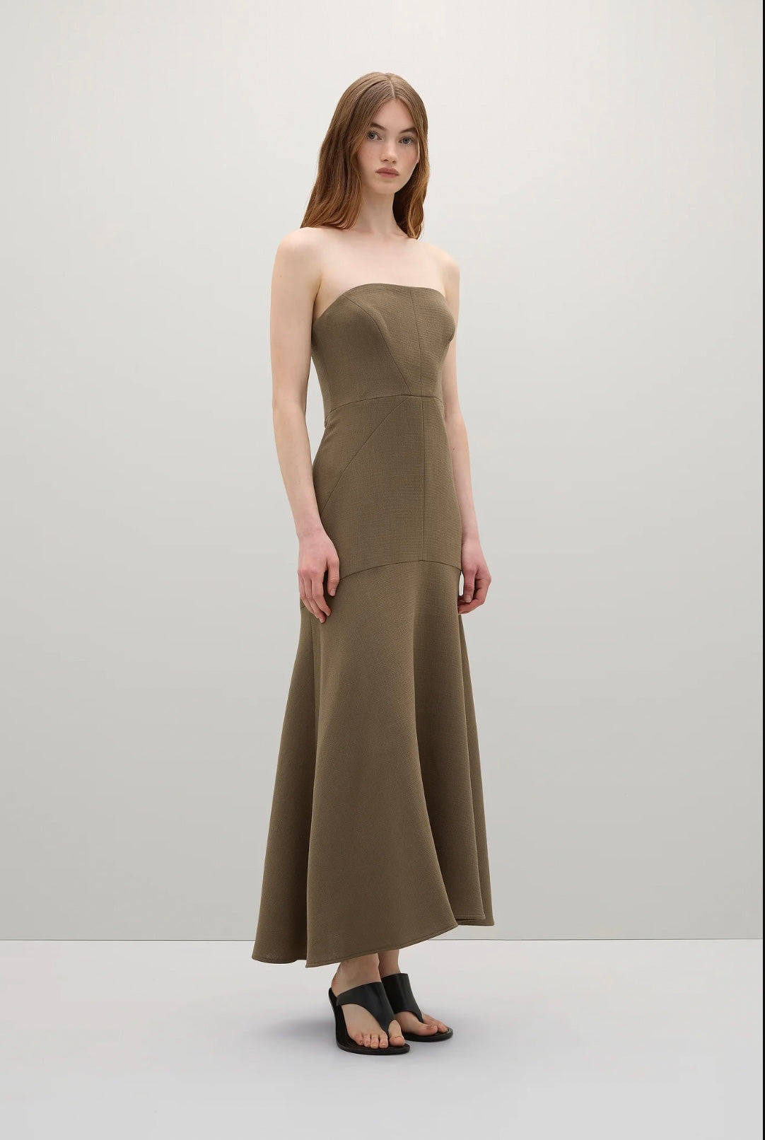The Ender Dress is a truly elegant style, its bodice features internal boning for structure and support, with a contrasting, generous bias-cut skirt that drapes effortlessly across the body for a universally flattering fit.