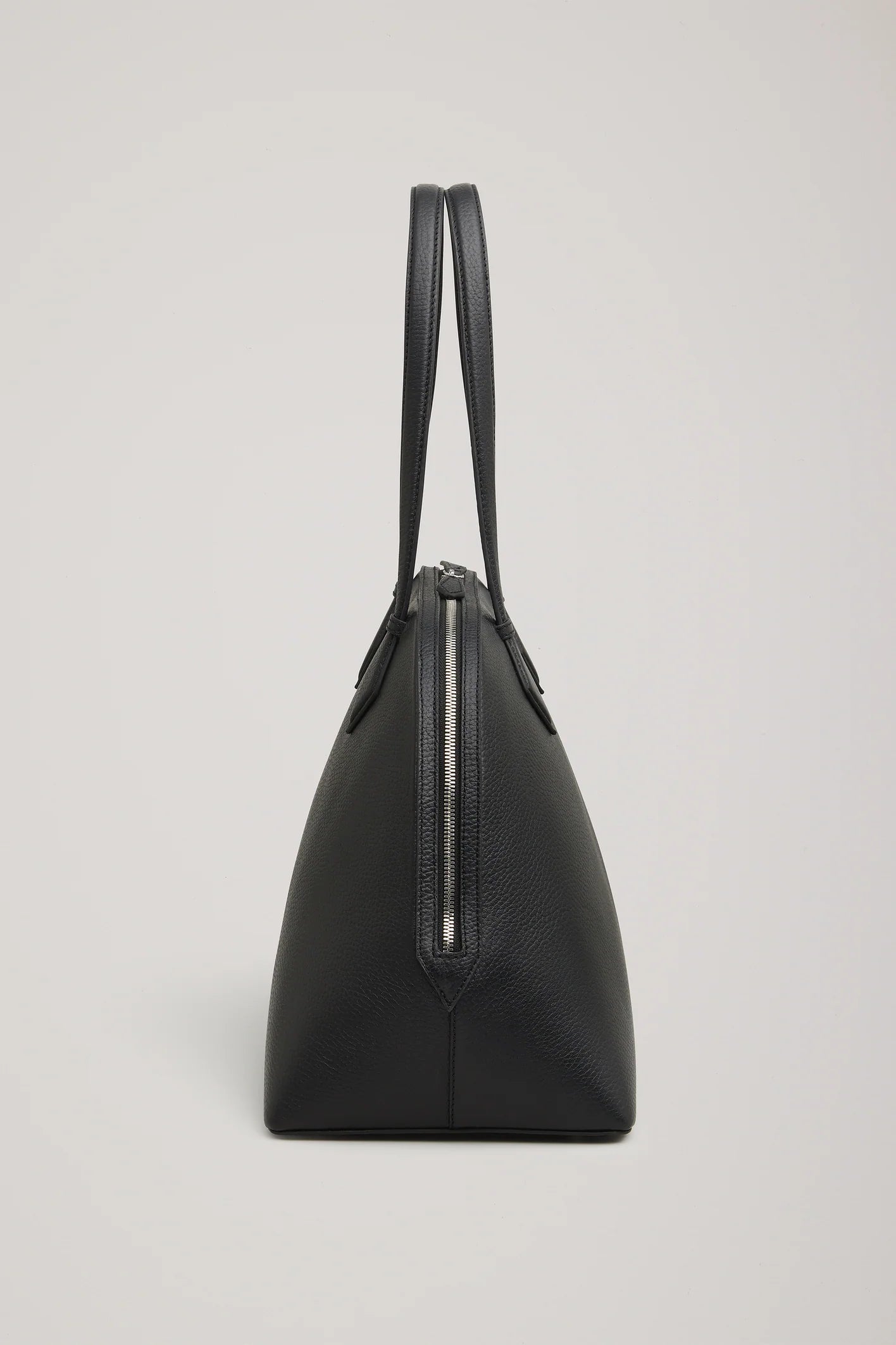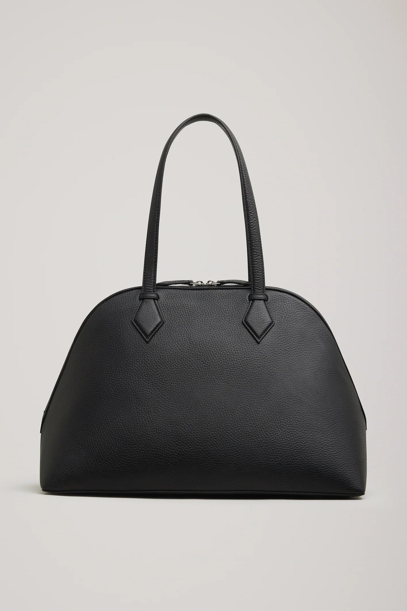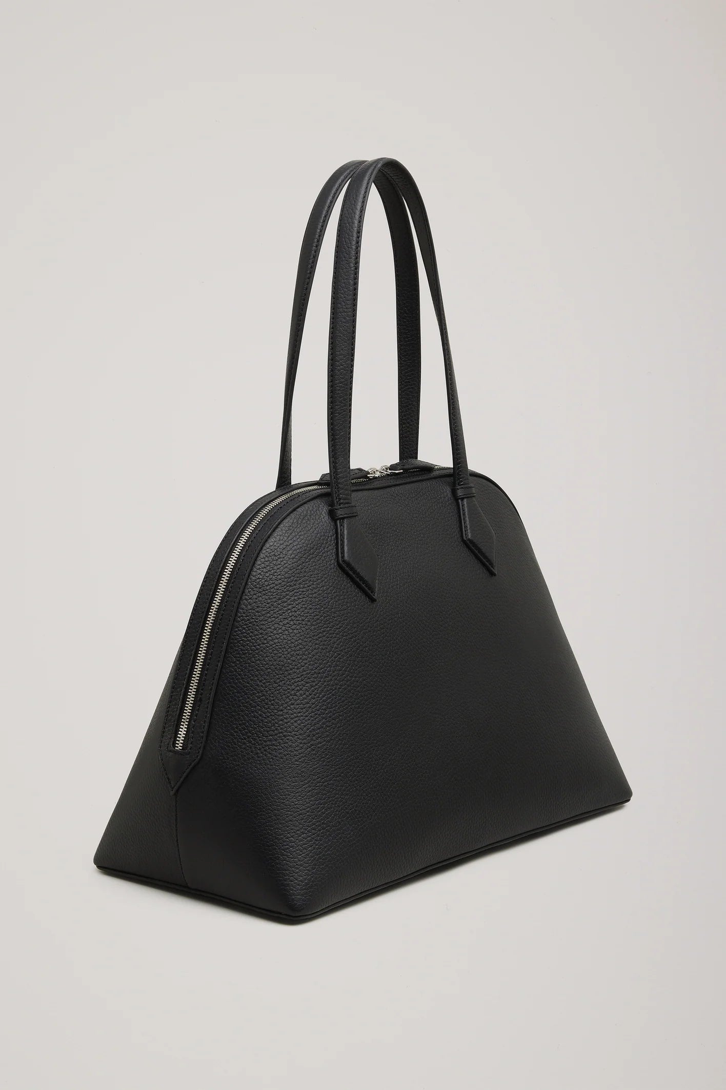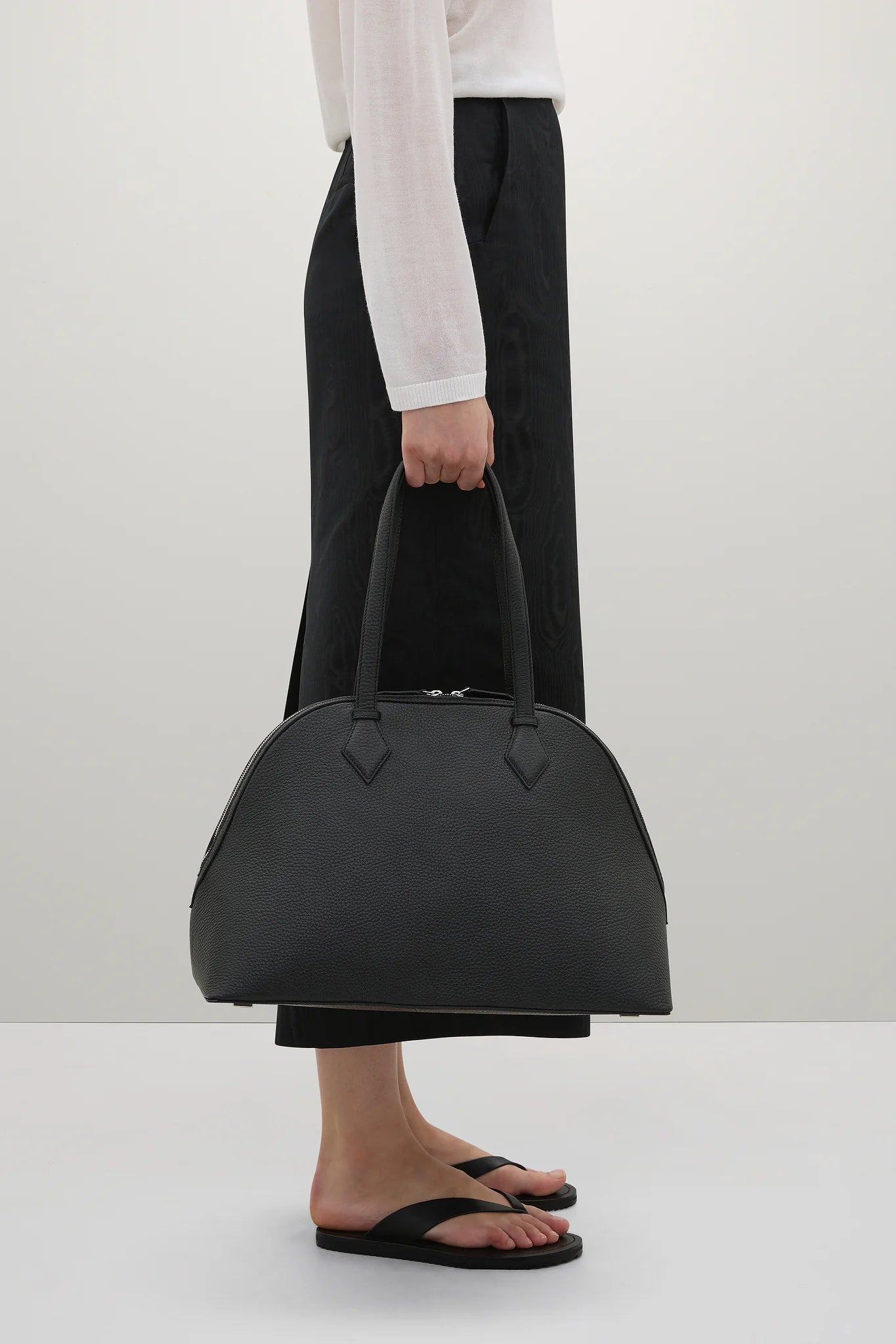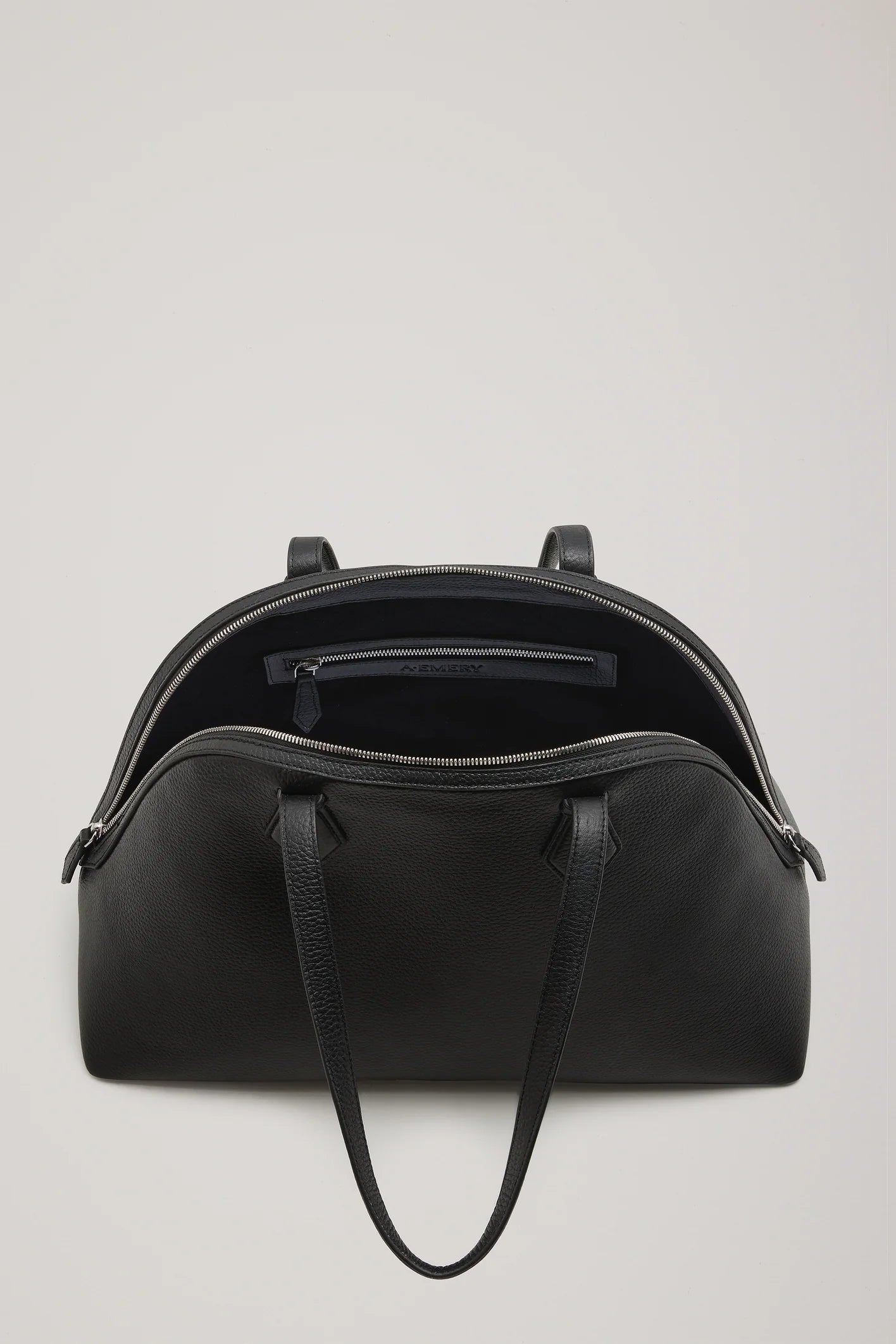 The Harnick Bag is crafted from premium pebble leather, defined by a sculptural tapered silhouette. Designed with functionality in mind, it features a two-way double zip closure, structured handles and four protective feet at the base. The interior is lined in a premium cotton twill and finished with a single internal zip pocket offering secure space for essentials.