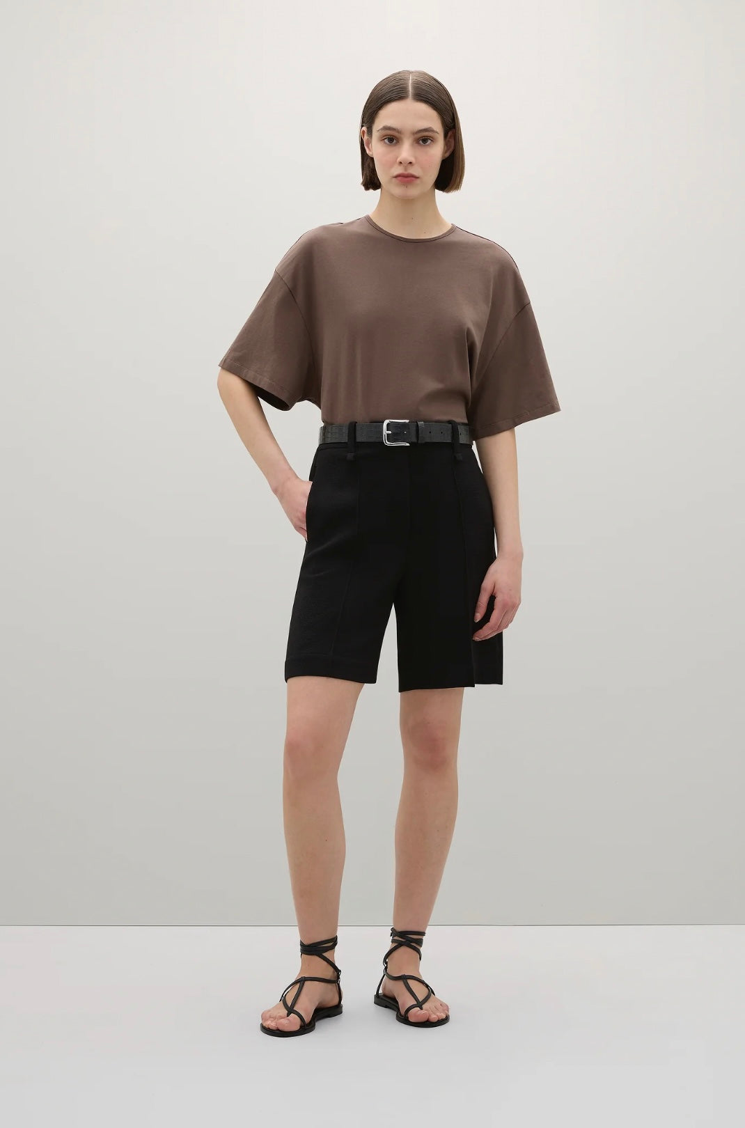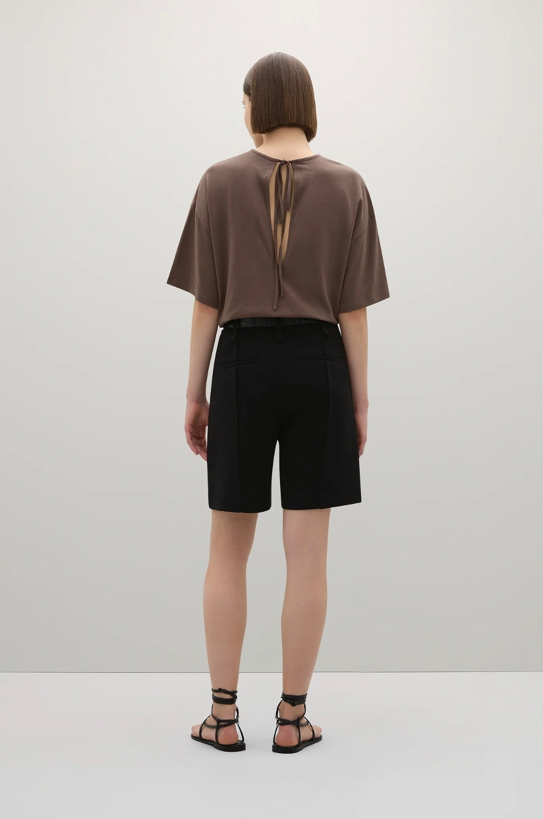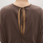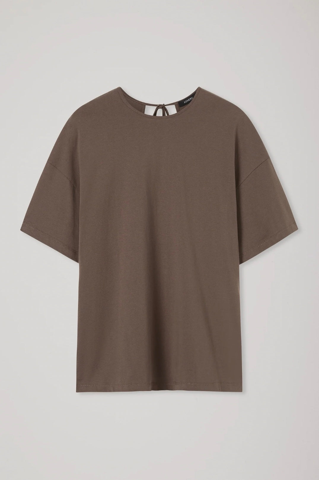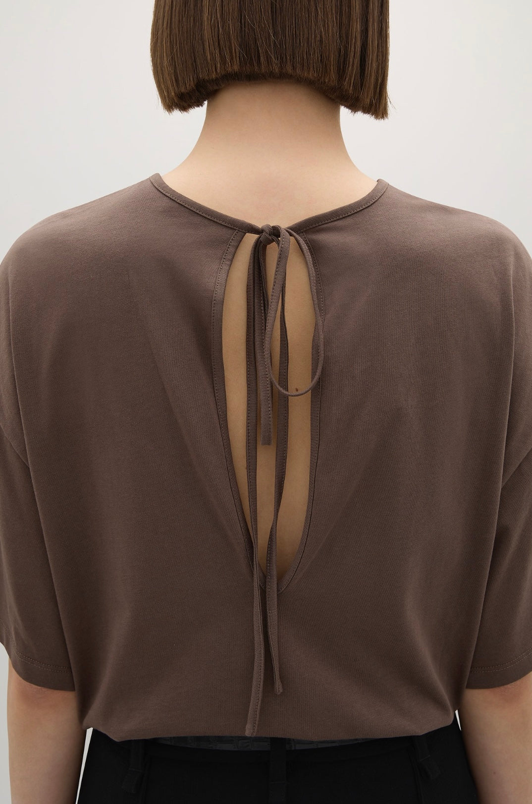 The Mika Tee is an oversized jersey T-shirt with a keyhole tie located at the back of the neck. This effortless style can be worn alone or layered for versatility when styling.