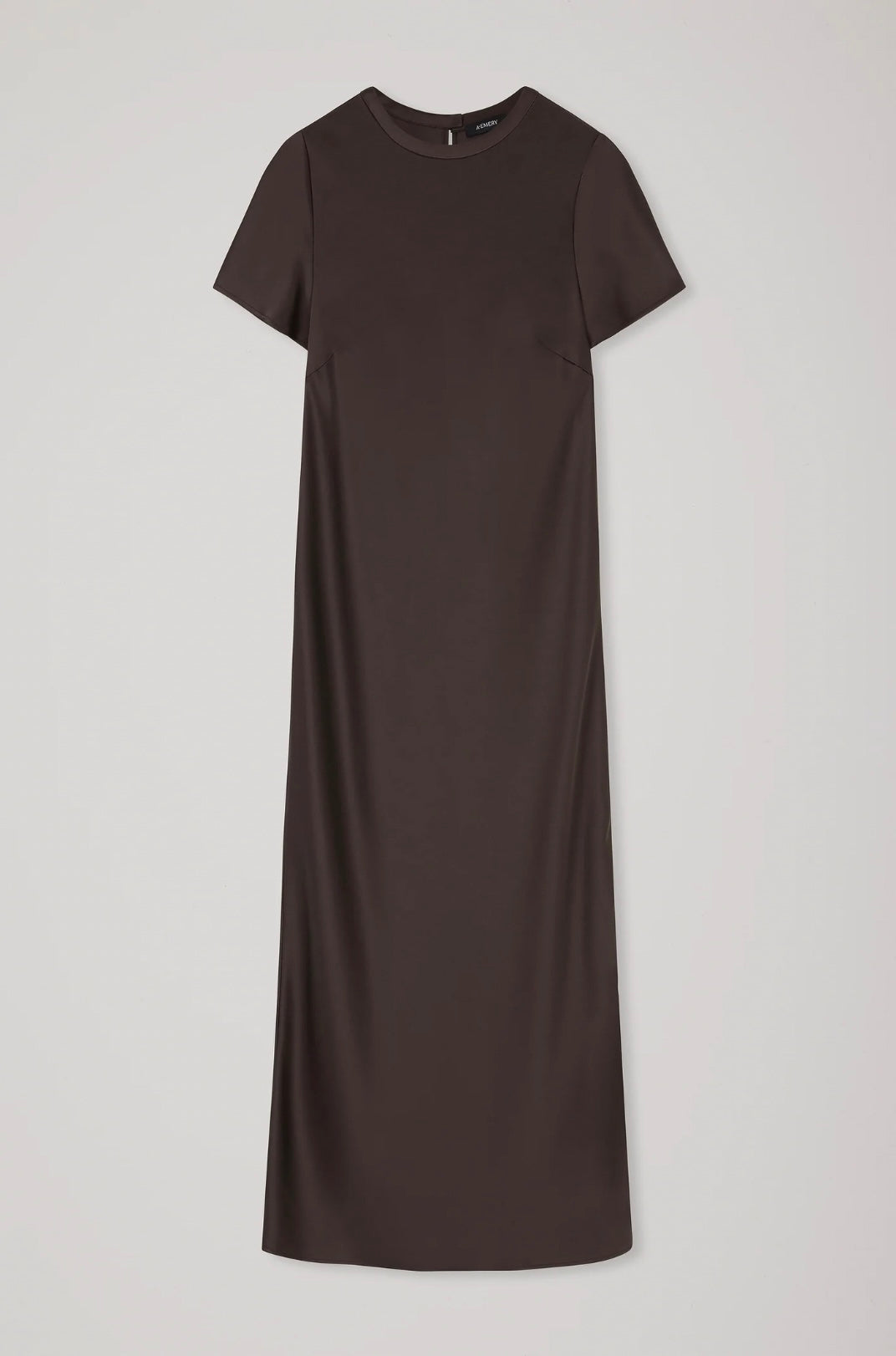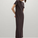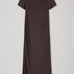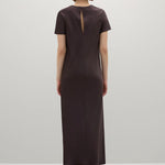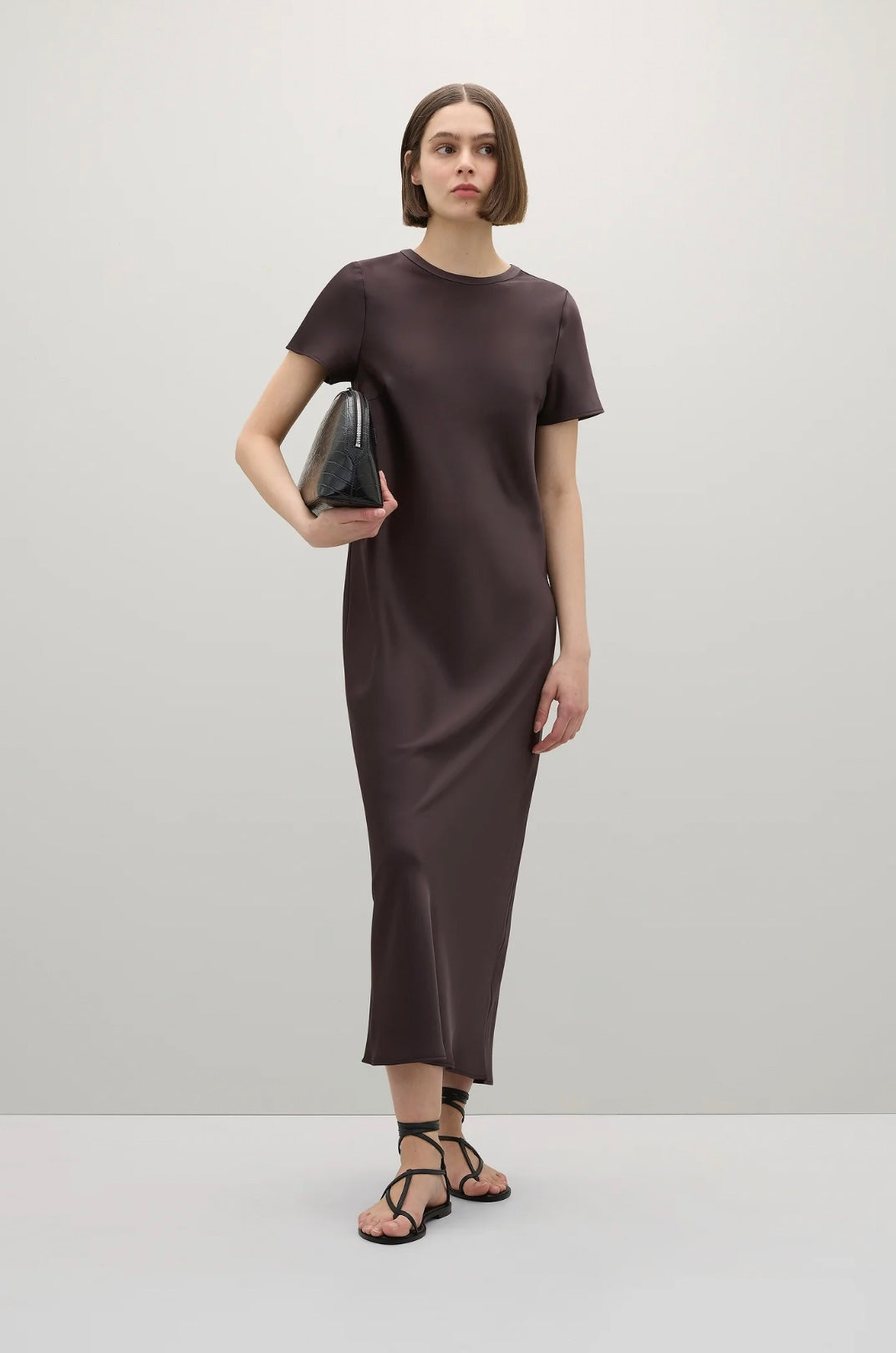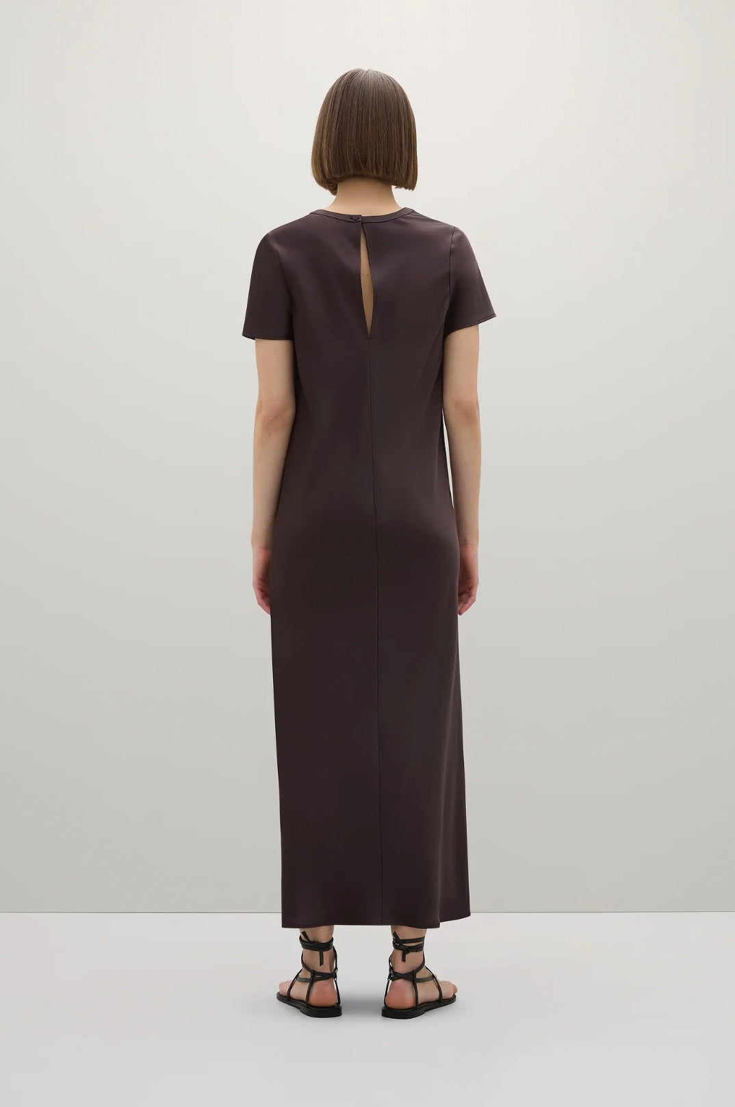 Crafted from premium Japanese triacetate, the Moore Dress is an elevated T-shirt style maxi dress with a short sleeve, button closure at the back of the neck, and cut on the bias for a universally flattering fit.