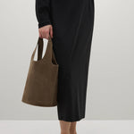 The Wren Bag is a bucket bag in a petite proportion, crafted from premium suede leather. Defined by its circular base with a piped edge, refined with two handles for a compact yet functional carryall. A scaled-down counterpart to the Timms Bag, the Wren Bag balances ease and elegance of everyday wear.