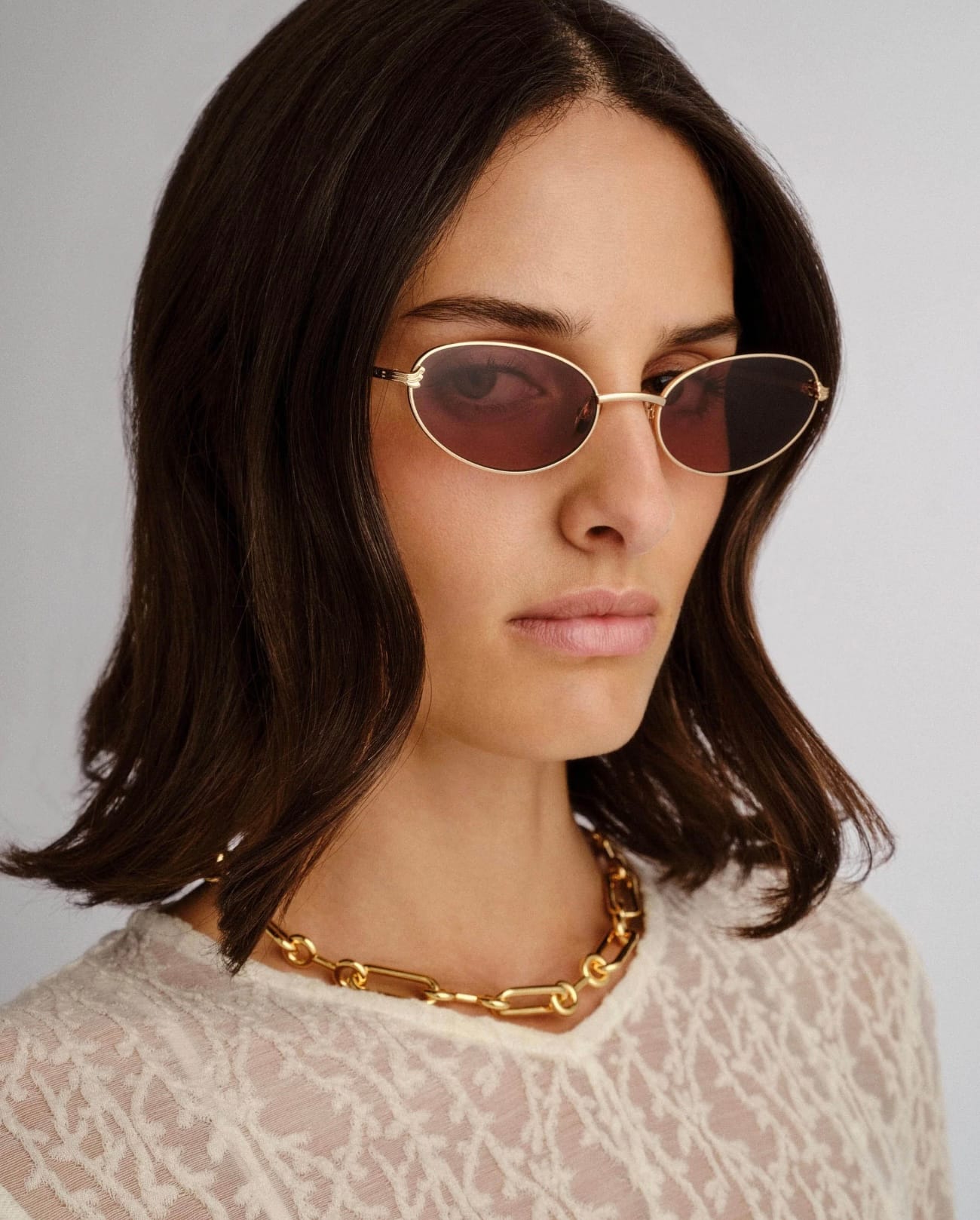 • Finished in a premium gold frame with tan mono lenses.