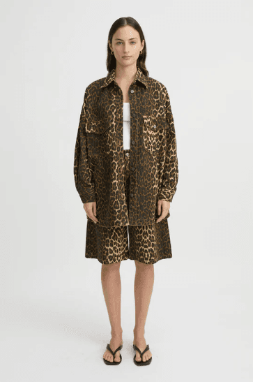Unleash your wild side with the Velo Jacket in Leopard Print. Bold and effortlessly cool, this jacket is designed for the fashion-forward, featuring oversized chest pockets and jean button details for a touch of laid-back charm. Whether you’re pairing it with a basic tee and the matching Velo Shorts for a playful, adventurous look or simply throwing it over your outfit as that perfect finishing touch, this jacket transitions seamlessly from day to night. Versatile, daring, and always on-trend, the Velo Jacket is the ultimate piece to add flair to your seasonal wardrobe.