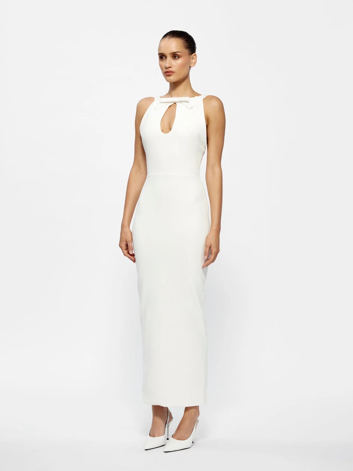 Welcoming the Carter Dress, an effortlessly elegant maxi dress designed for all occasions. Featuring a straight neckline with a detailed bow, the Carter falls on the body beautifully whilst cinching in at the waist. Featuring a V-shape open back and a slight cutout at the bodice to accentuate the female form. Crafted from our signature crepe fabrication. The Carter is a timeless classic that takes you through all seasons and occasions.