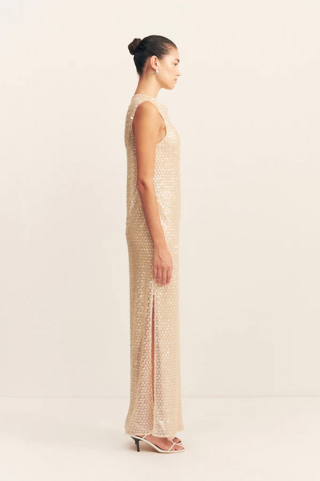 Shona Joy Everly High Neck Maxi Dress| Macadamia