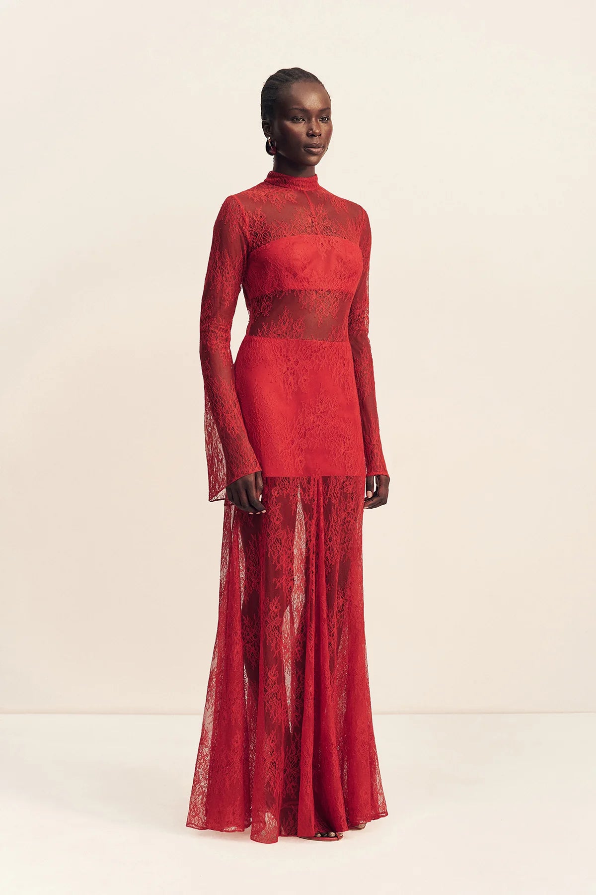 Shona Joy Labyrinth Lace High Neck Maxi Dress | Cherry