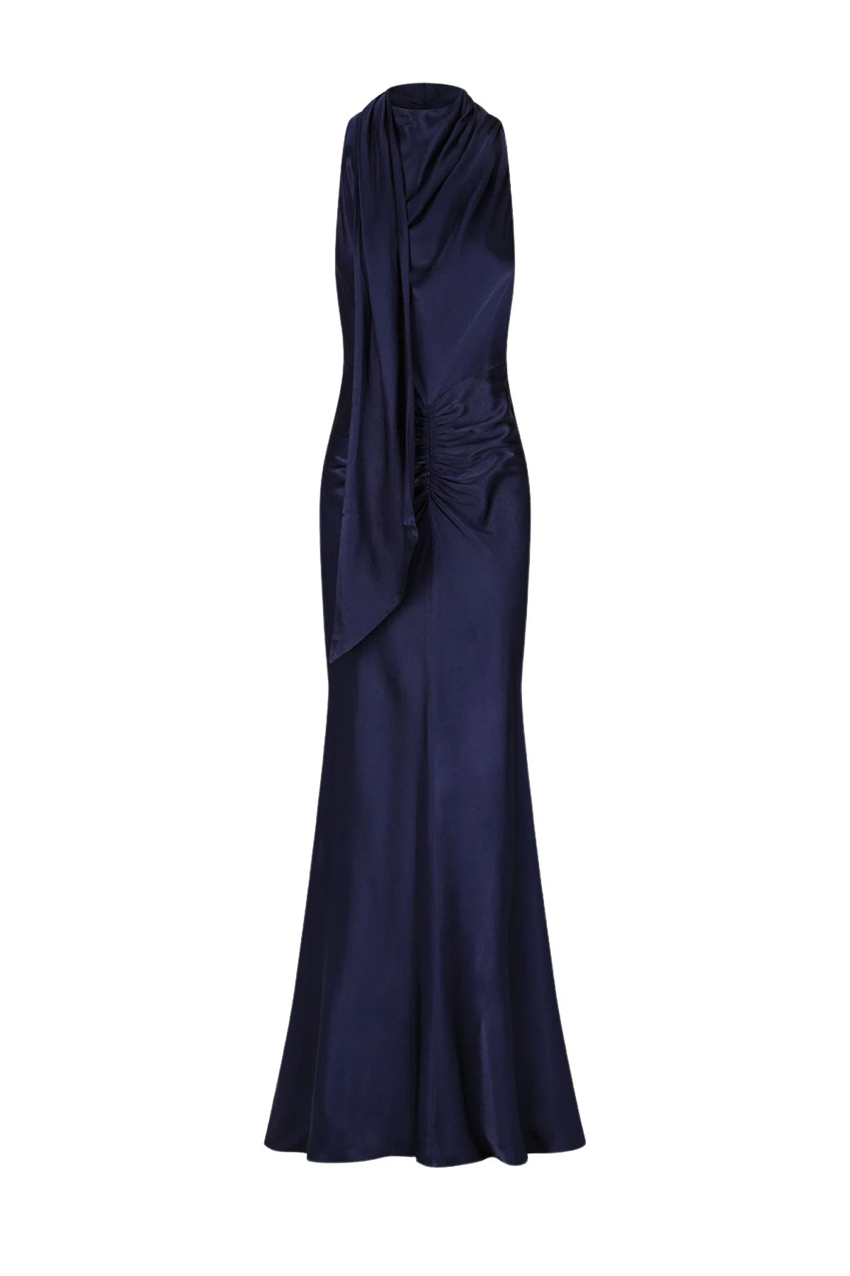 Shona Joy Lino Scarf Neck Maxi Dress | Deep Midnight