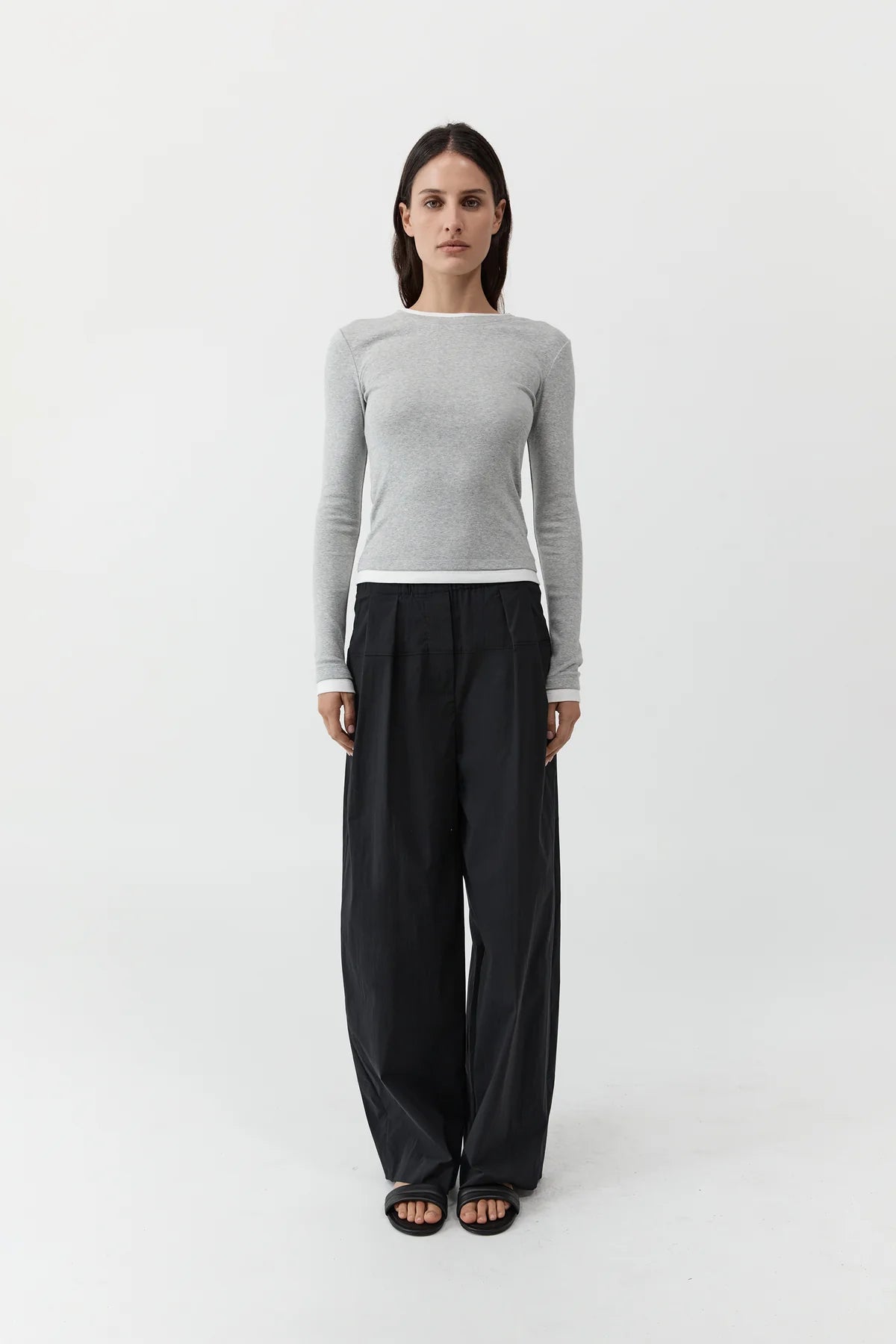St Agni Organic Cotton Layered Long Sleeve | Grey Marle (PRE-ORDER)