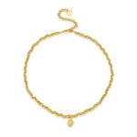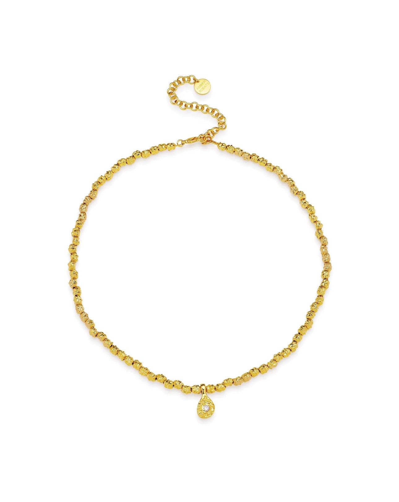 The Martigues Necklace is a timeless treasure, featuring a crystal encrusted teardrop pendant and our signature 24K crushed gold nugget beads.