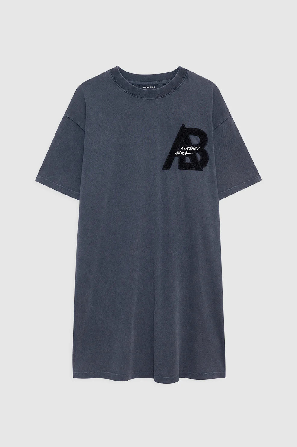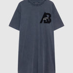 A collegiate-inspired T-shirt mini dress made from a soft, heavyweight vintage cotton jersey in washed black.