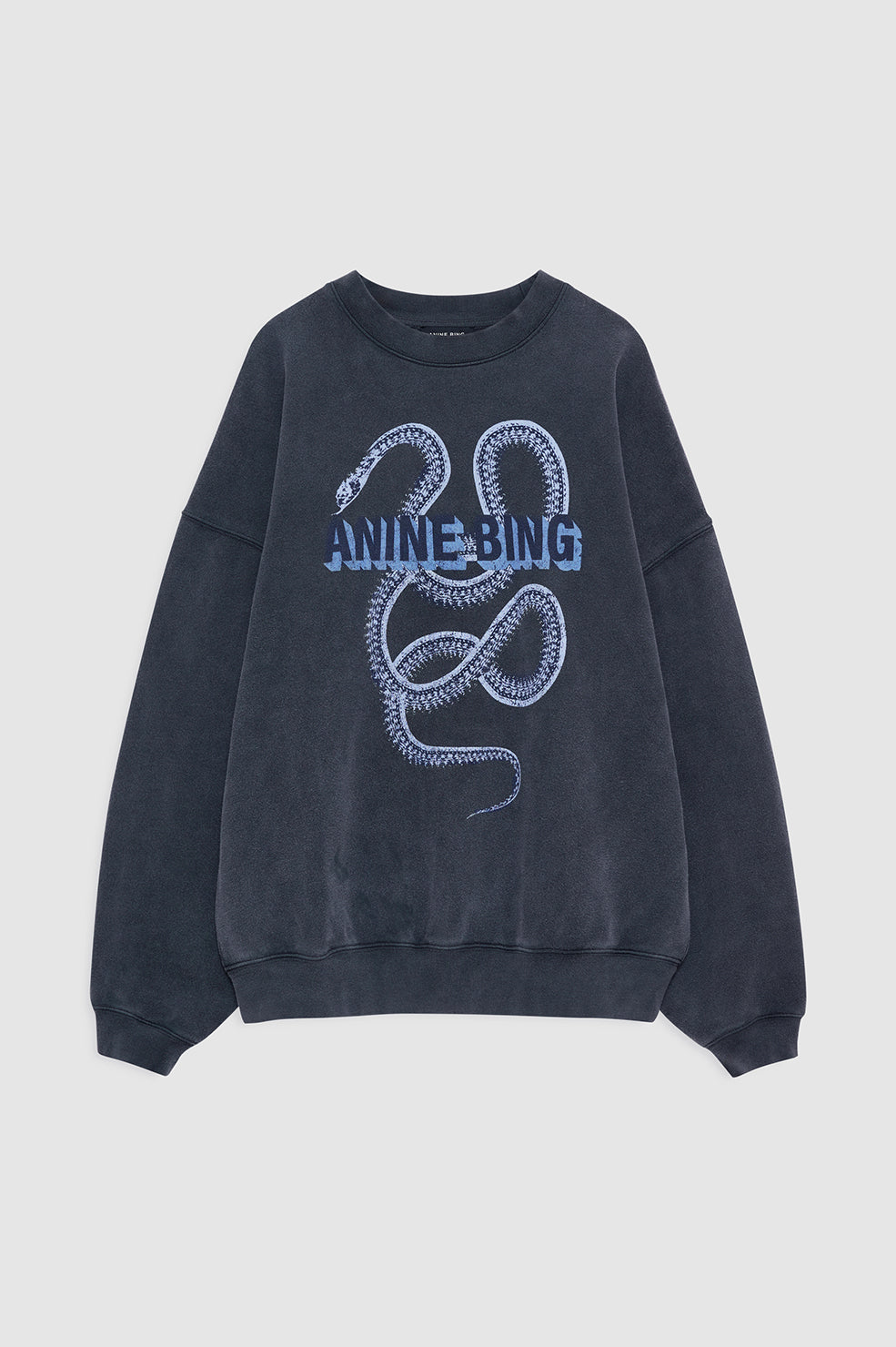 Anine Bing Harvey Crew Sweatshirt Snake | Washed Black