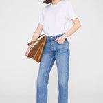 A timeless denim staple reimagined with subtle edge. Crafted from midweight, rigid regenerative cotton denim with an authentic, structured feel that softens over time, the Kate Jean is finished in a tidal blue with vintage-inspired grinding and light abrasion. This straight-leg silhouette offers a perfectly worn-in look while maintaining clean, modern lines. Designed to sit comfortably at the mid rise with an ankle-length inseam, this essential is an effortless everyday style that pairs seamlessly with everything from crisp shirting to relaxed knits.