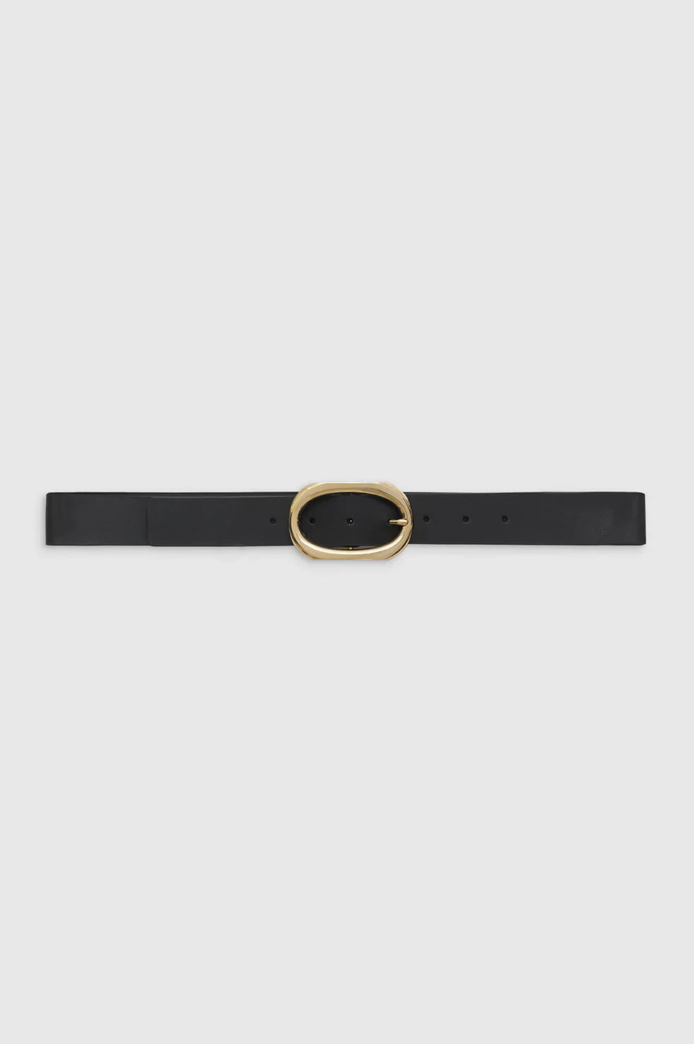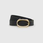 An everyday belt made from smooth 100% cow leather in black featuring a timeless, signature-link buckle with subtle ANINE BING branding.