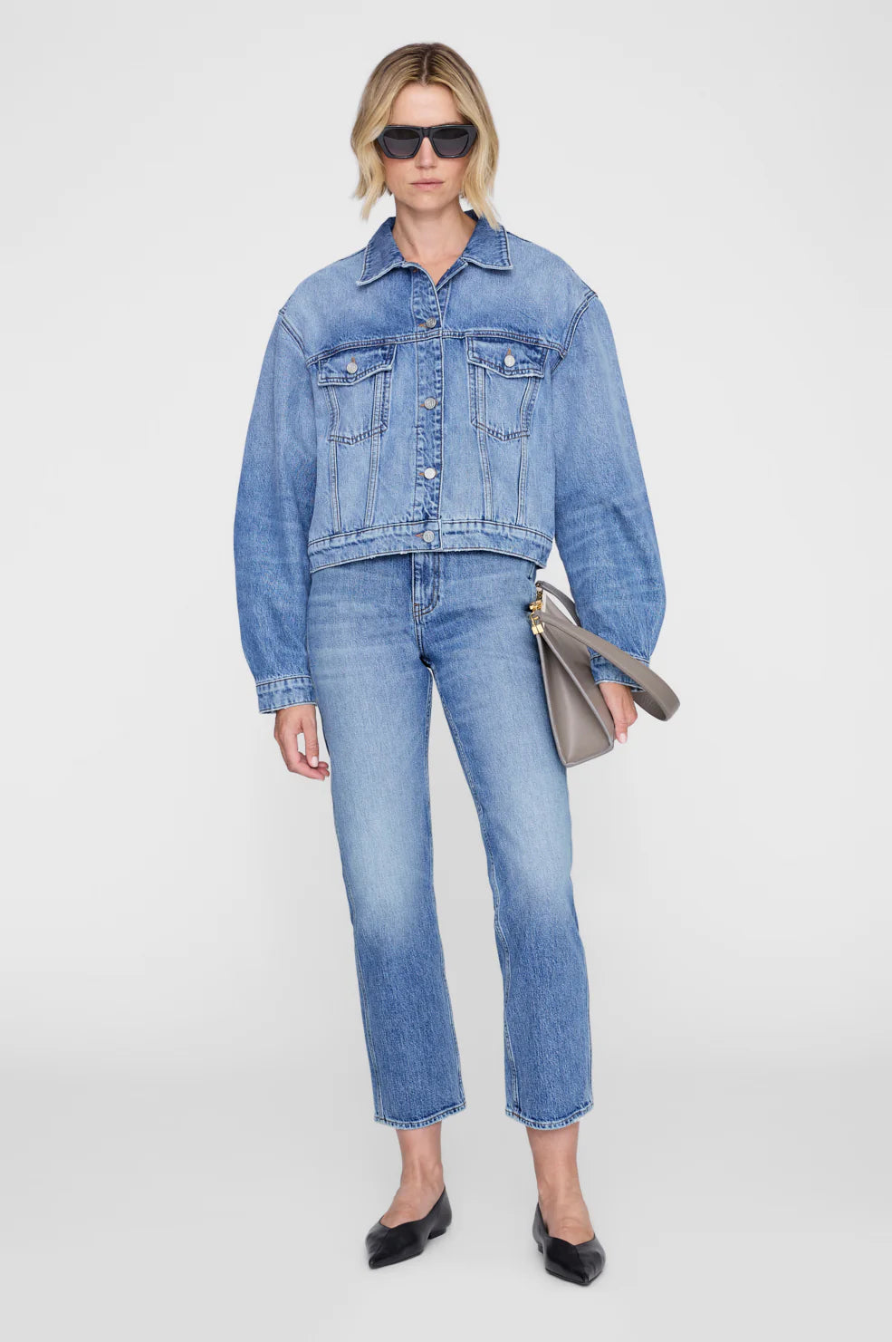 A modern take on a classic denim silhouette, the Quincy Jacket is designed with a clean, minimalist edge. Crafted in blue denim, this structured layer features a boxy, slightly cropped fit with subtle volume through the sleeves for an effortless, off-duty feel. Finished with traditional denim detailing, it’s a versatile essential that transitions seamlessly from season to season.