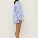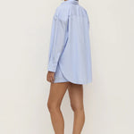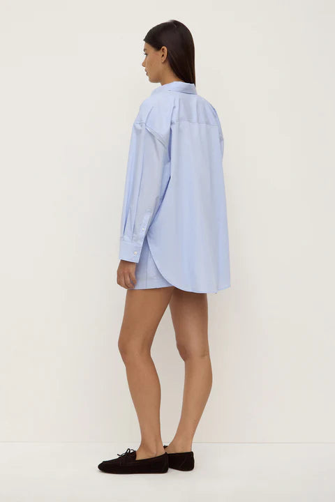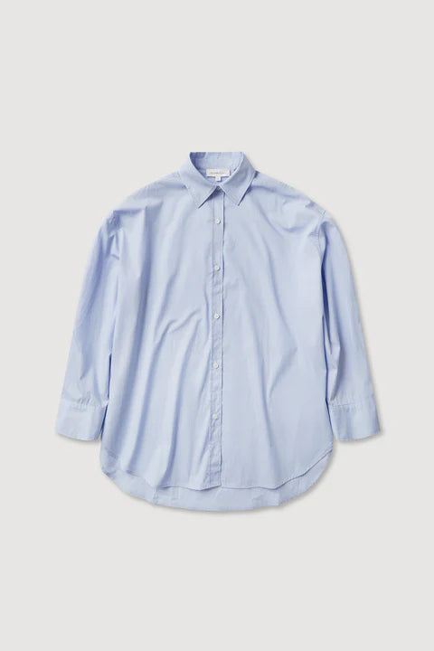 The Havana Stripe Poplin Shirt in blue/white stripe is a 100% cotton long sleeve shirt with a two-piece collar and double button cuffs with sleeve placket.