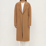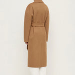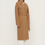 The Ivy Wool Coat in camel, an updated version of our best-selling Sadie Coat, features a slightly longer length for added coverage, as well as side seam welt pockets and a long detachable belt.