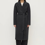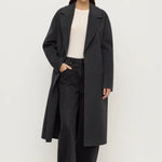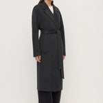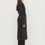 The Ivy Wool Coat in charcoal marle, an updated version of our best-selling Sadie Coat, features a slightly longer length for added coverage, as well as side seam welt pockets and a long detachable belt.