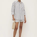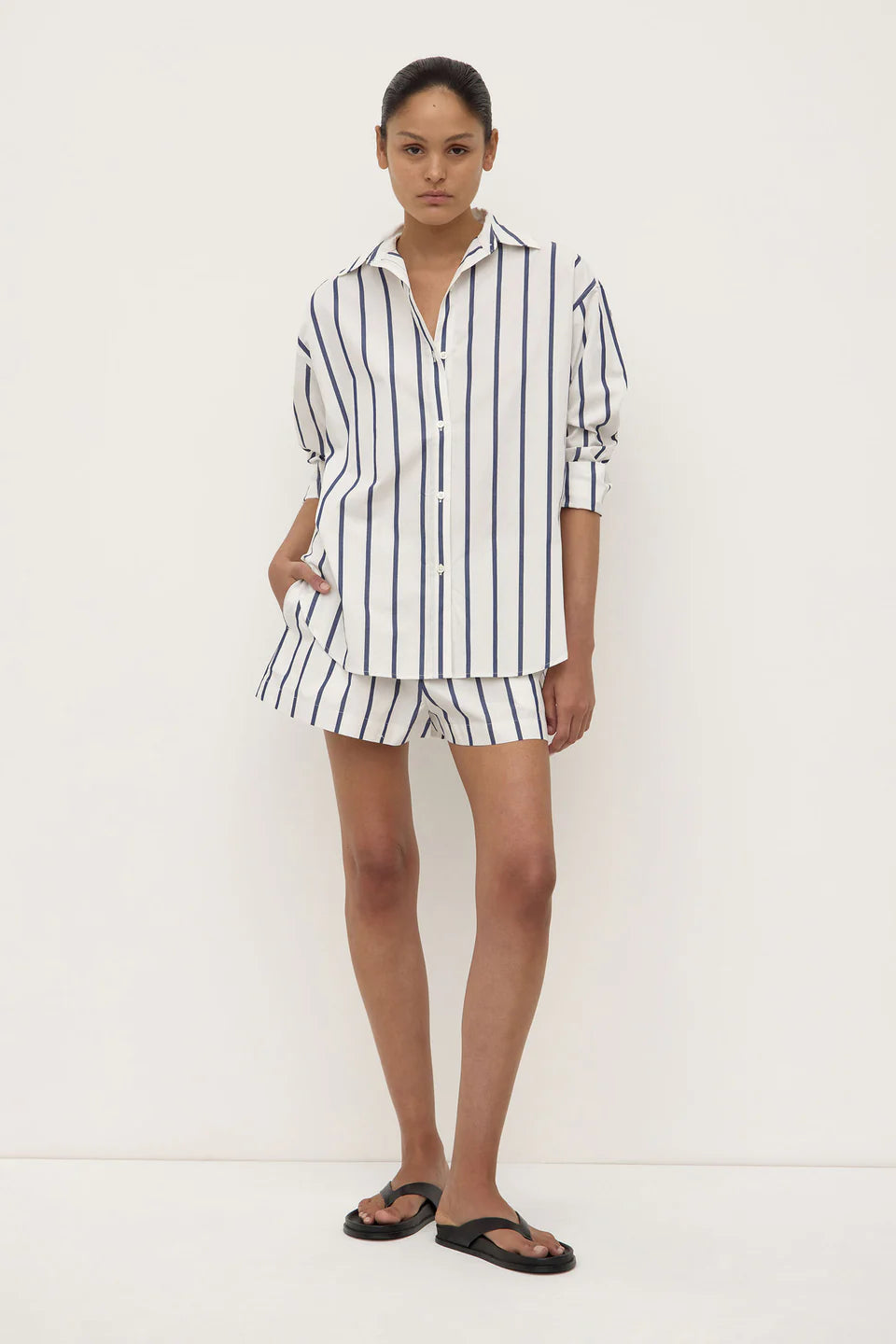 Crafted from our signature cotton poplin, this shirt is cut in a relaxed silhouette and features a new season stripe. Can be worn with the matching Nara Stripe Short.