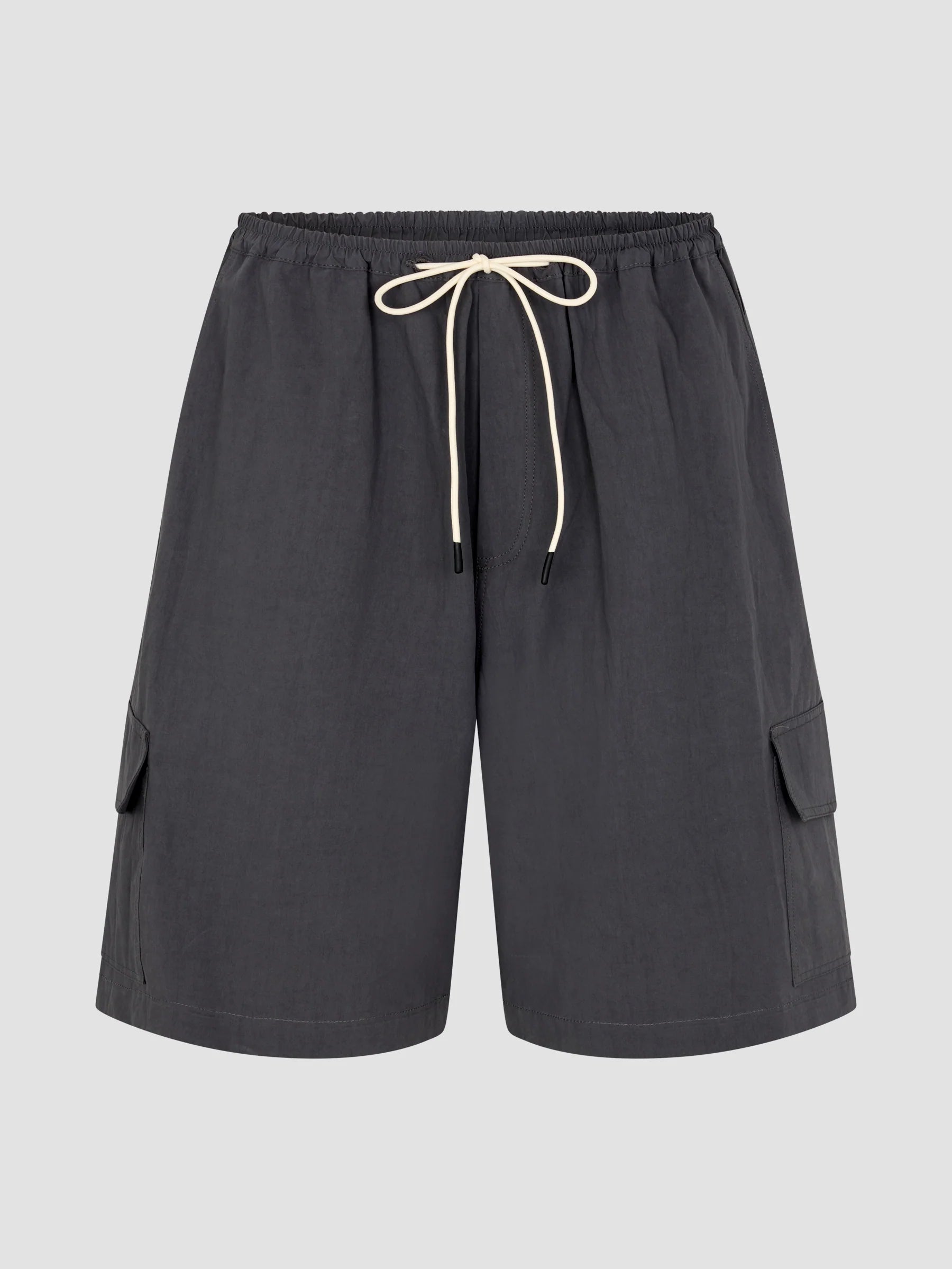 Bassike Crushed Cotton Cargo Short | Washed Black
