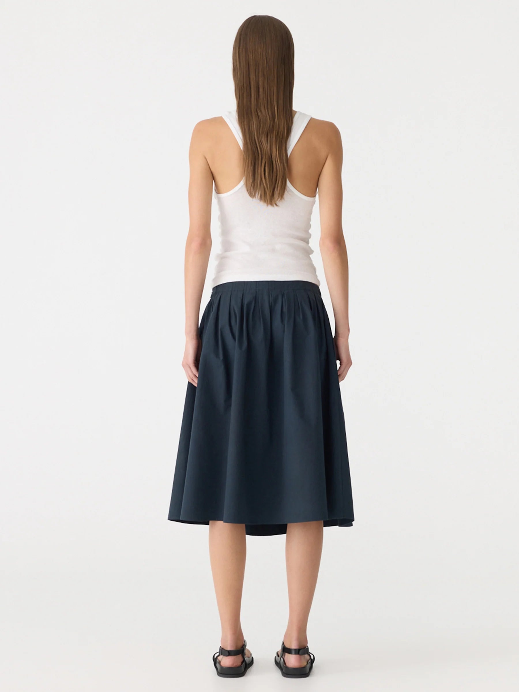 Bassike Crushed Cotton Gathered Skirt | Ink (PRE-ORDER)