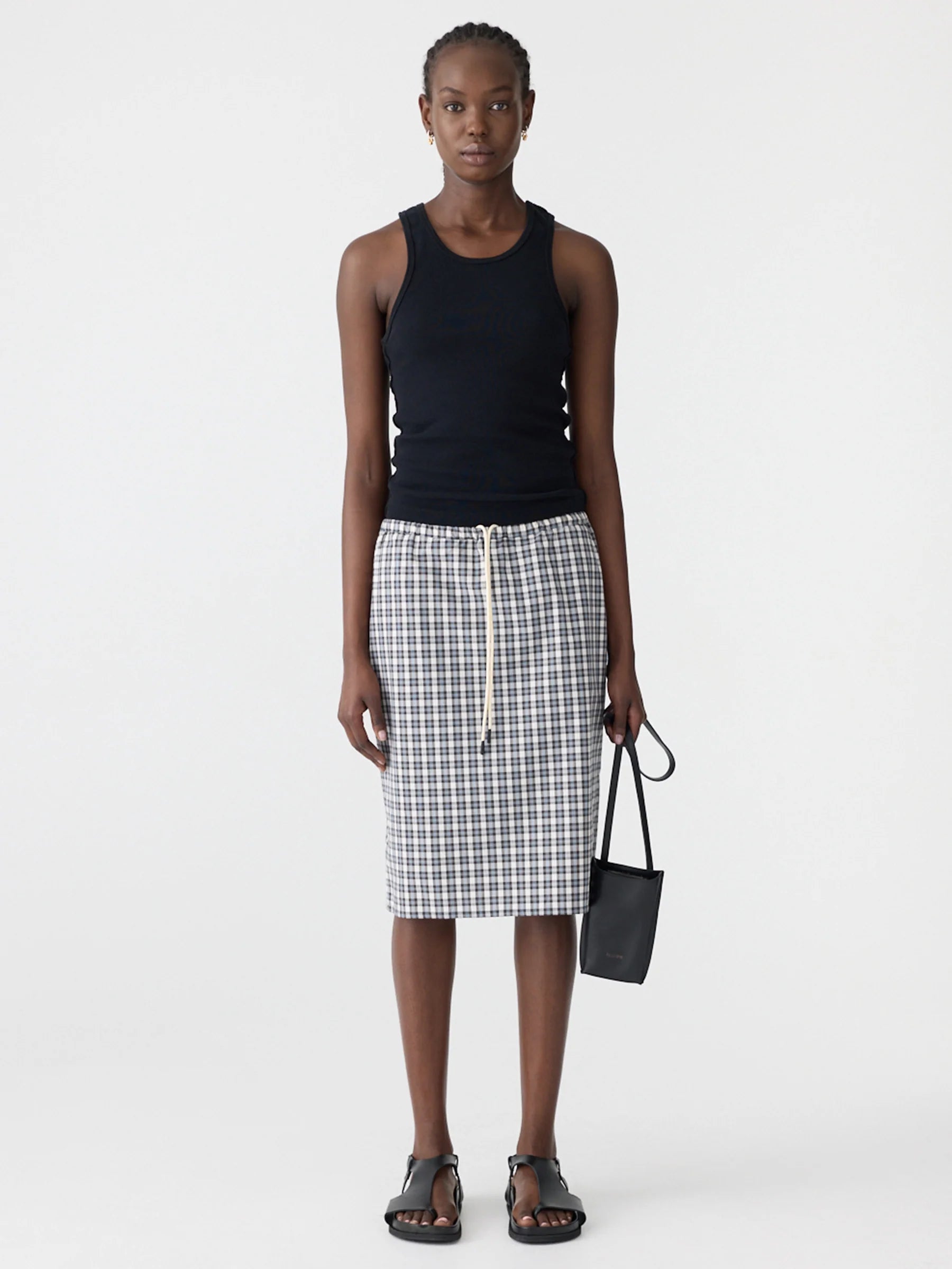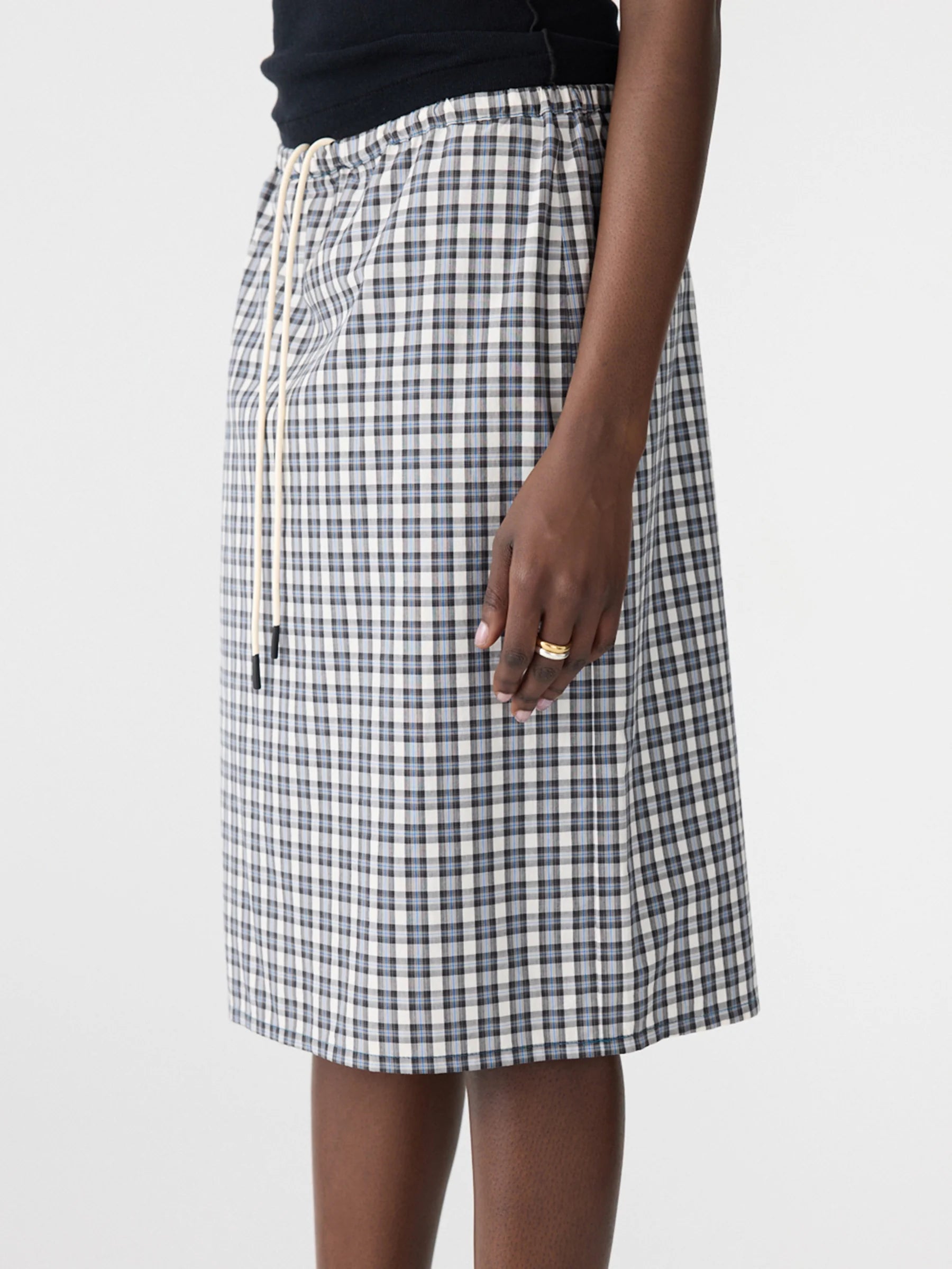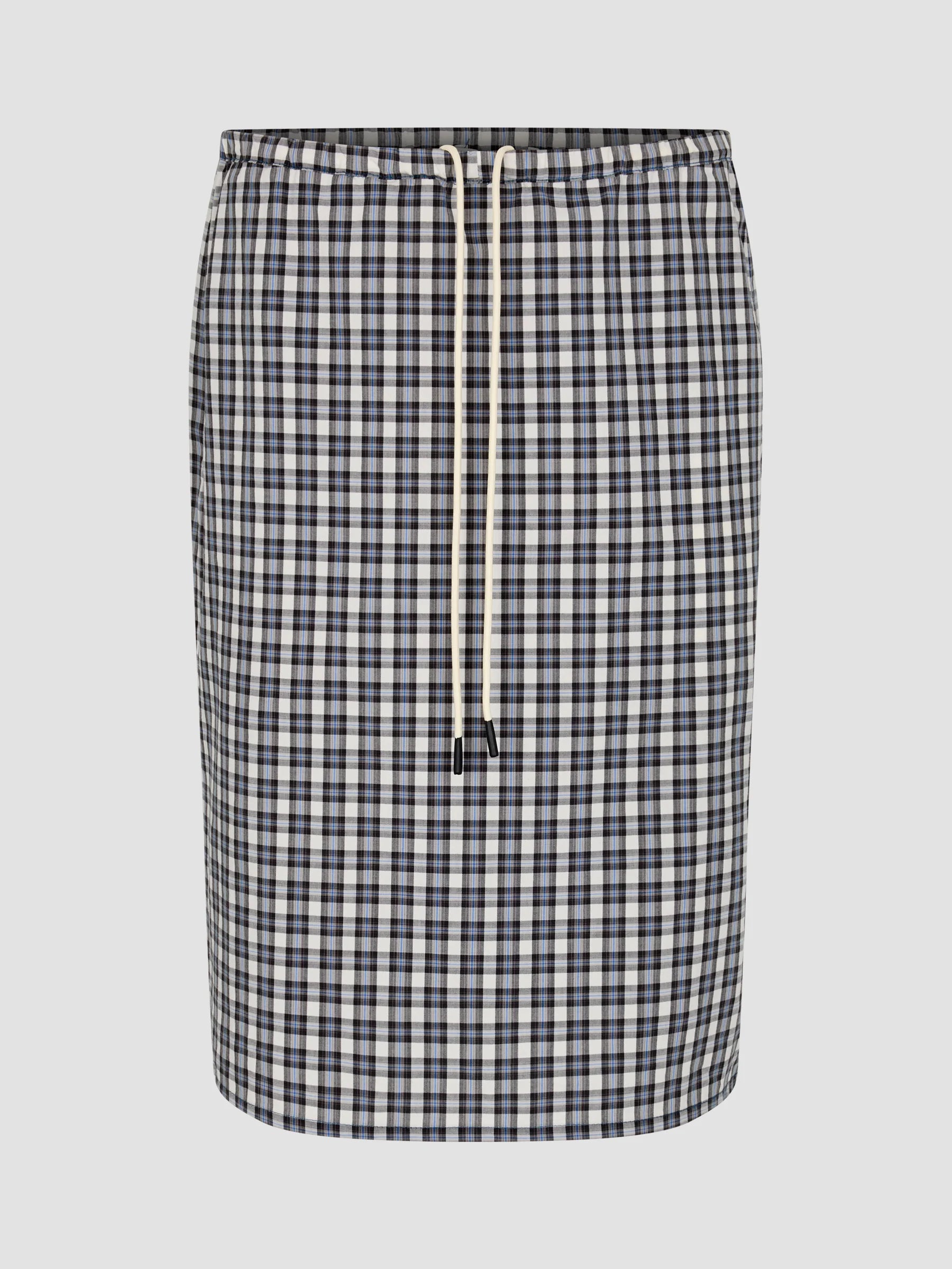 Bassike Yarn Dyes Check Pull On Skirt | Blue Check (PRE-ORDER)