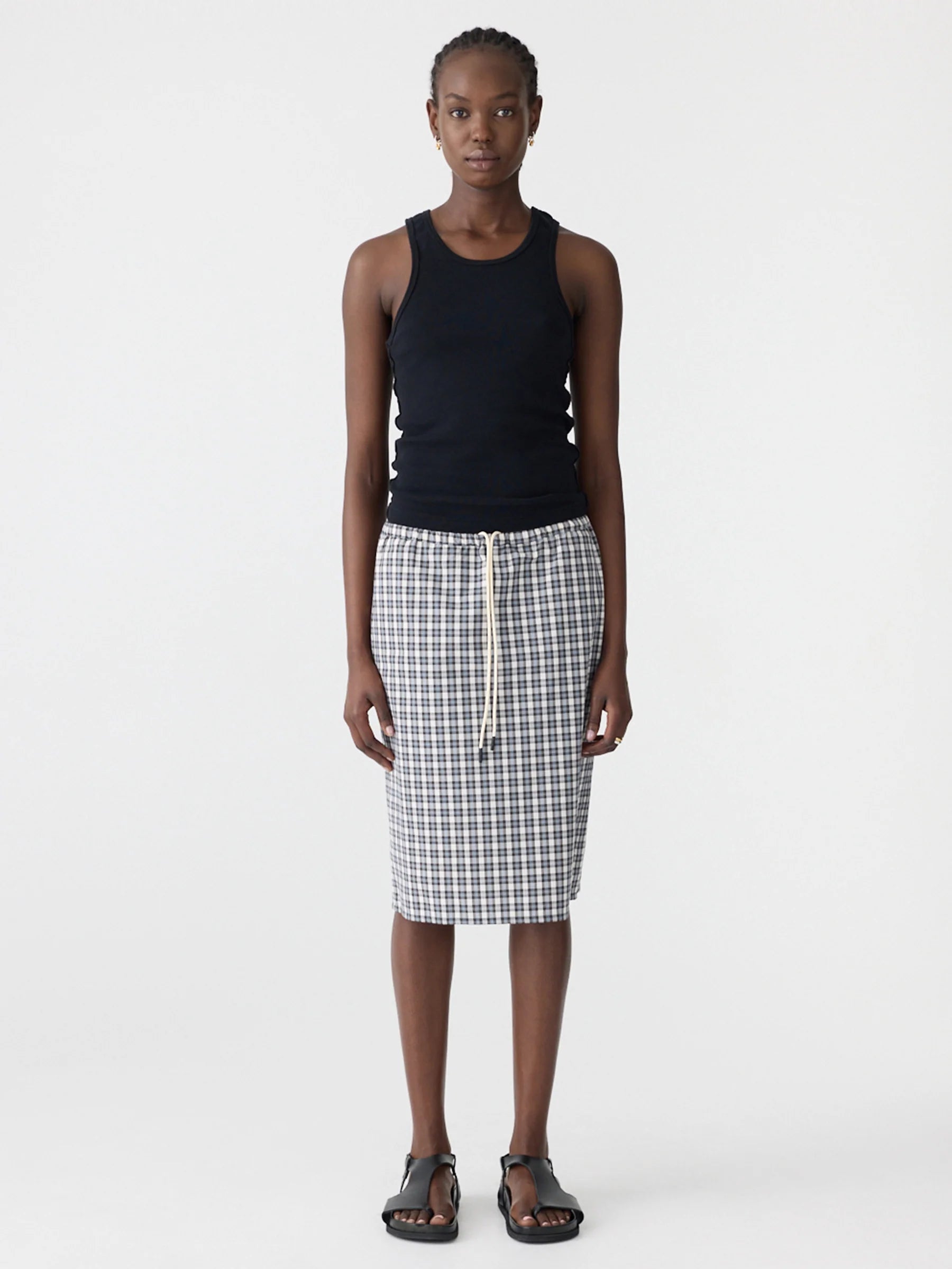 The Yarn Dyed Check Pull On Skirt is crafted in a 100% cotton, designed with a thin elasticated waistband and sporty drawcord for an adjustable fit. Knee-length with a lightweight, soft feel texture for effortless layering.