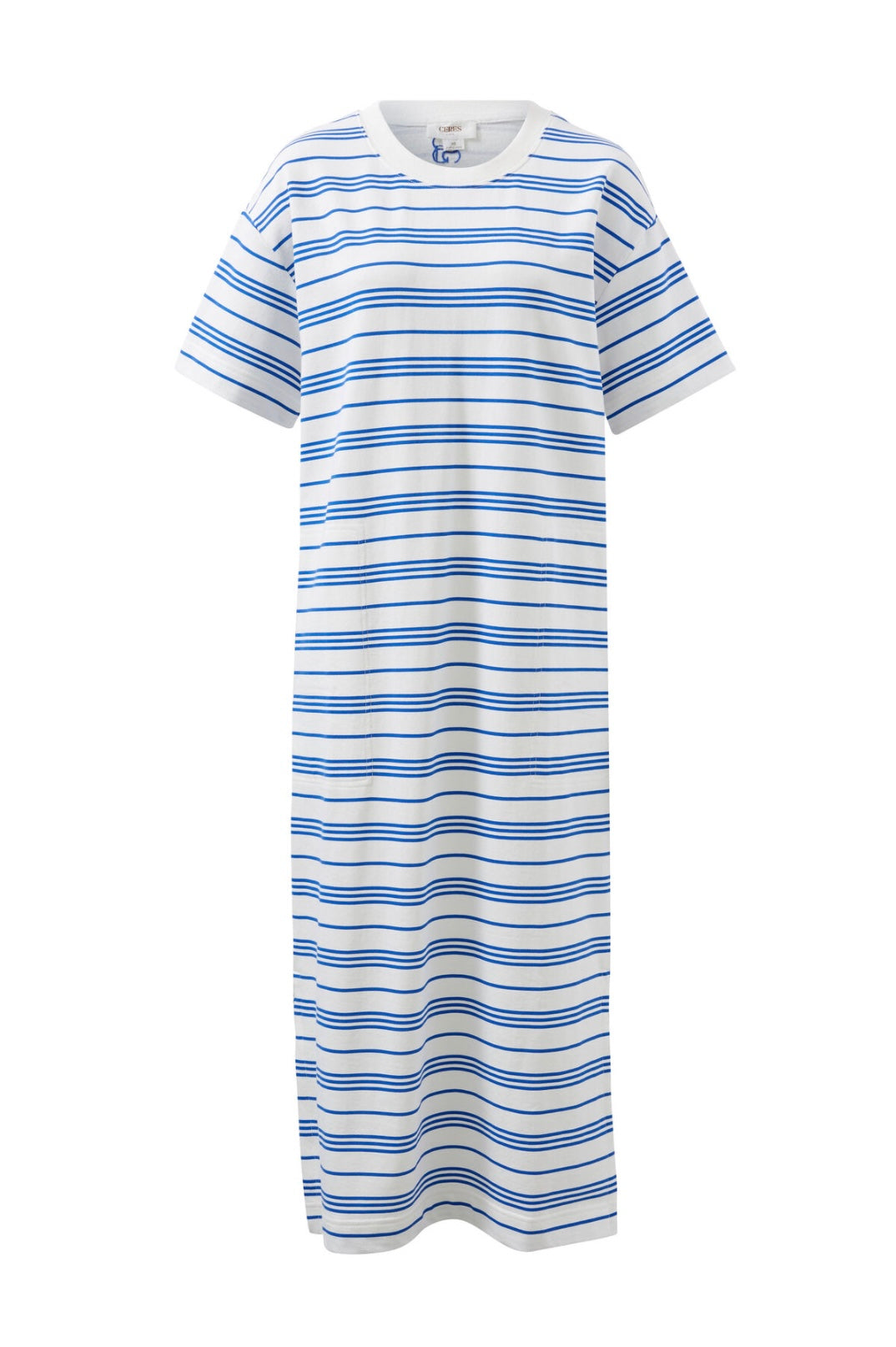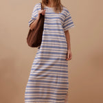 Ceres Life Charlotte Midi Terry Dress | White/Azure Blue Stripe