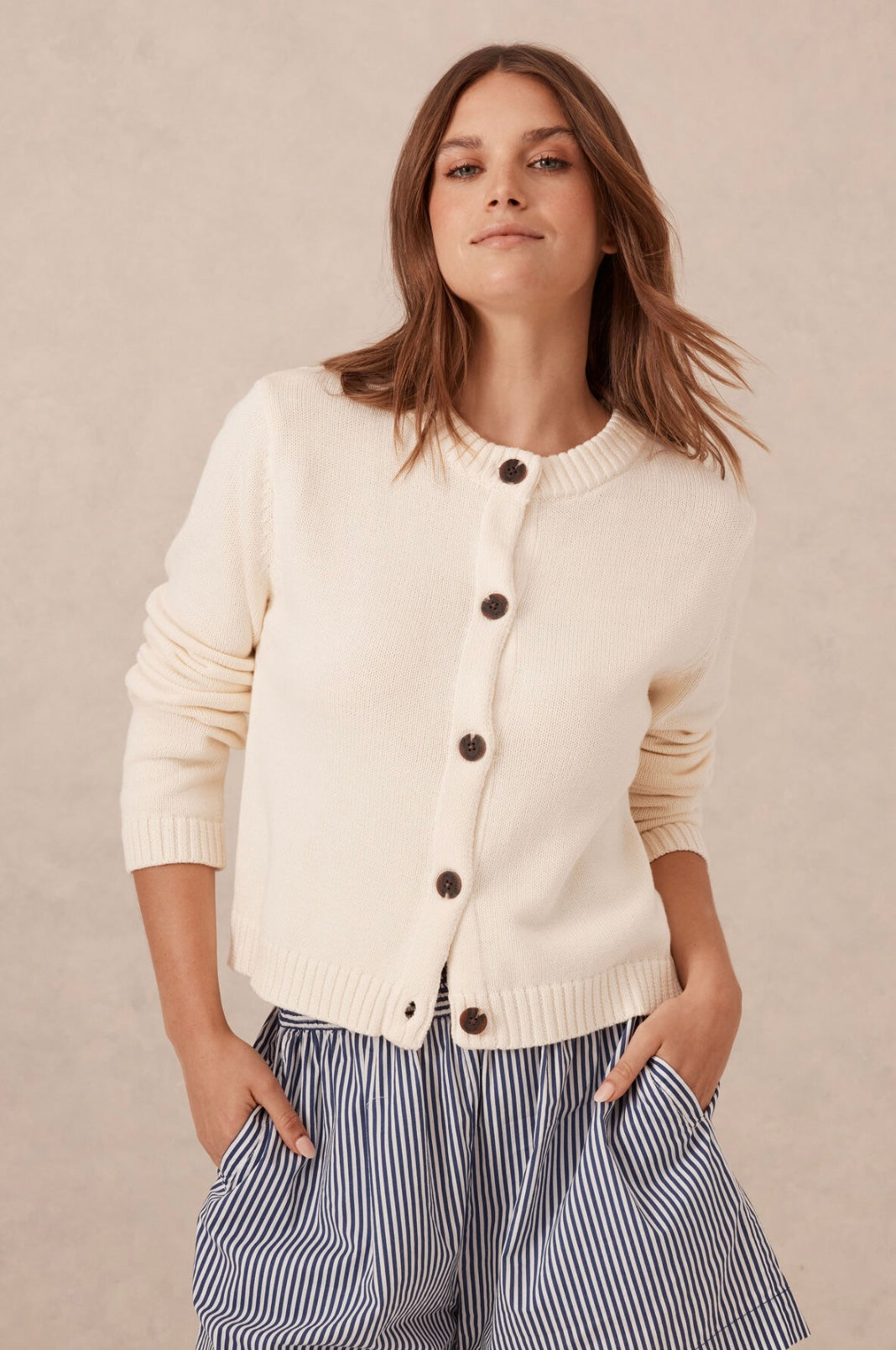 Ceres Life Nelly Long Sleeve Knit Cardi | Eggshell