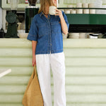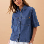 The Noa Short Sleeve Shirt is crafted from a mid-weight rigid denim with 39% TENCEL™ for a soft hand-feel. Its hip-length cut and side splits offer styling ease, while the curved two-piece collar and embroidered patch pockets add subtle effortless style. Pair back with our Mila Short for a Summer outfit you’ll reach for day after day.