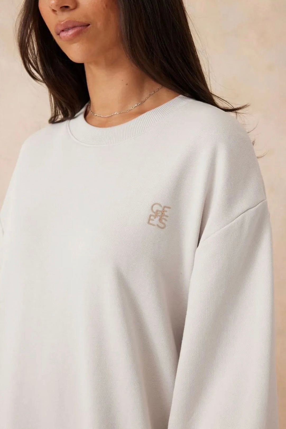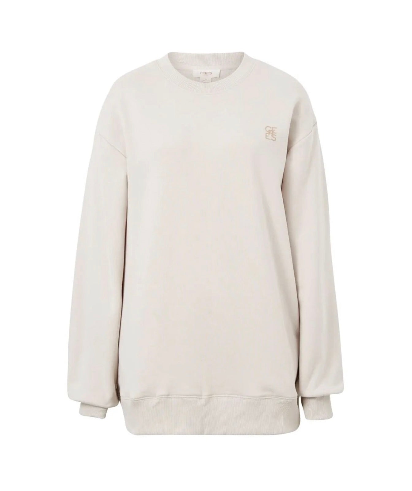 Ceres Life Oversized Slouchy Crew | Almond/Small Logo
