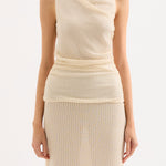 The Pharoah Top is created out of a premium stretch fabrication, with intricate beading and sequin embroidery. The silhouette of this top is fitted through the body with length finishing at the hip. Details include a high asymmetrical cowl neckline, gathers through side seams and delicate draping through the body.
