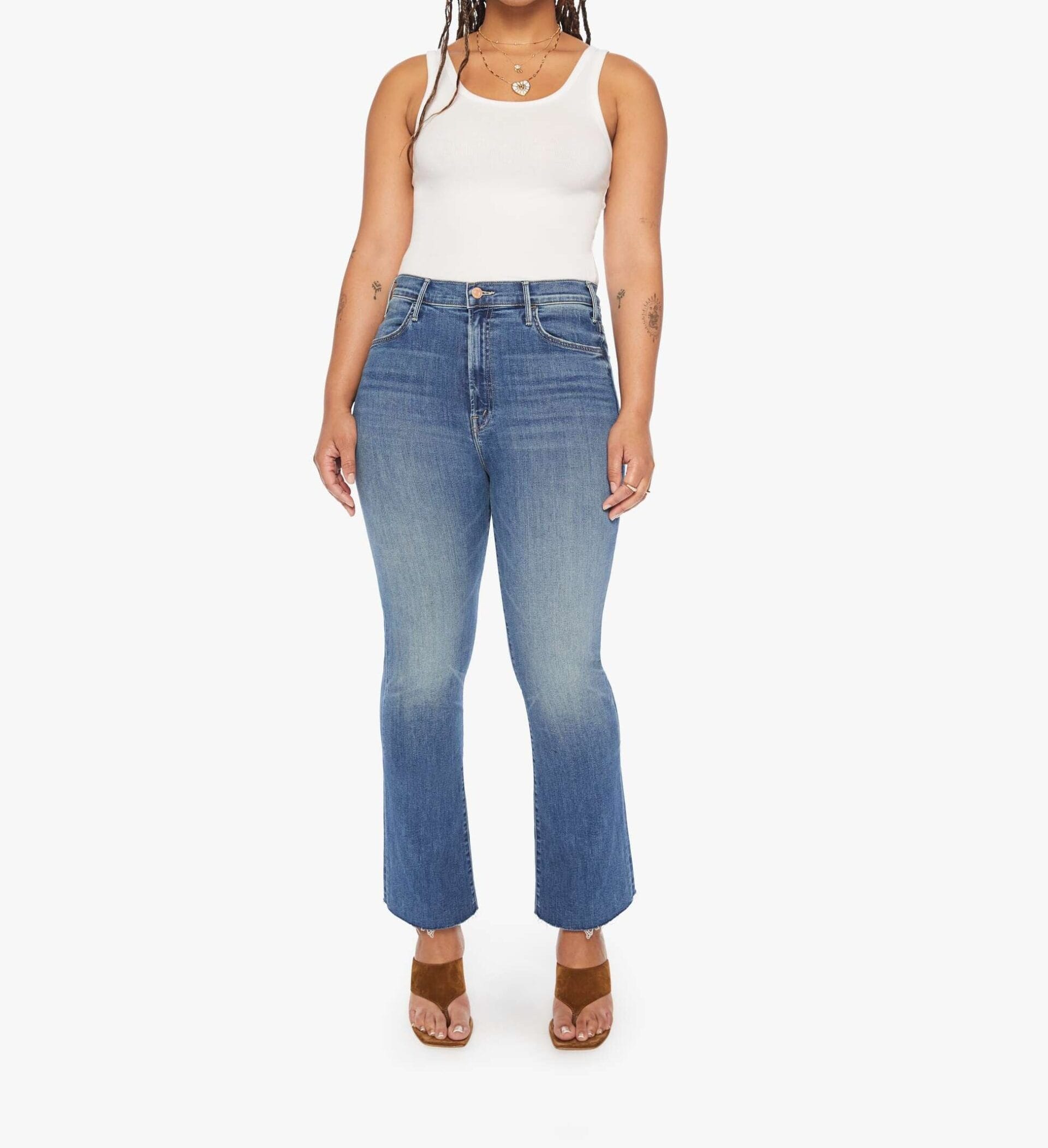 Pick your potion. This bestselling high-rise flare has an ankle-length inseam and a raw hem. Cut from stretch denim, Healing Jar is a mid-blue wash with fading throughout.