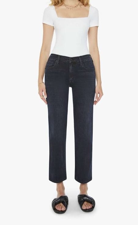 Mother Mid Rise Zip Rambler Ank in Night In Venice.Imagine the pasta-bilities. Mid-rise jeans with a wide straight leg, zip fly and clean ankle-length inseam. Made from denim with a touch of stretch, Night In Venice is a dark denim wash.