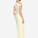 This style features an asymmetrical design with a goddess-like quality. Her waterfall sash detail at the hip elongates the body, creating strong vertical lines. 'Sisal' can be worn from the day to the evening. Wear her with a flat to keep her more relaxed, or elevate the look with the addition of a heeled sandal.