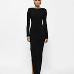 Meet the Indie Gown, an effortlessly elegant floor length gown designed to take you to all occasions. Crafted from our signature stretch crepe, Indie features a sleek long sleeve silhouette with a deep open back. Designed with the feminine form in mind, Indie is designed to accentuate the body and transcend you through the seasons.