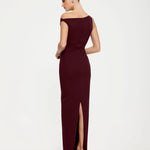 Meet the Inaya Gown, a contemporary silhouette designed for the modern day woman. Crafted with our signature crepe fabrication for the most flattering fit and silhouette on the body. Inaya features a slight off shoulder neckline, accented with a back split for ease of movement and comfort.