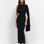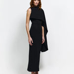 Introducing the Romi Dress, a masterpiece of intricate design and effortless elegance. Romi features an asymmetrical neckline with sculptural draping that cascades down the silhouette. Crafted with our signature crepe, Romi hugs the figure beautifully whilst also providing coverage and quiet luxury. Romi embodies modern sophistication and refined statement dressing, perfect for the upcoming event season.