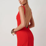 Welcoming one our core styles, the Verona Gown. Featuring a beautiful high straight neckline that falls into a low back and cut with a slight split at the back. Crafted from our luxurious stretch crepe that hugs the figure for the most beautiful cinched silhouette.