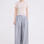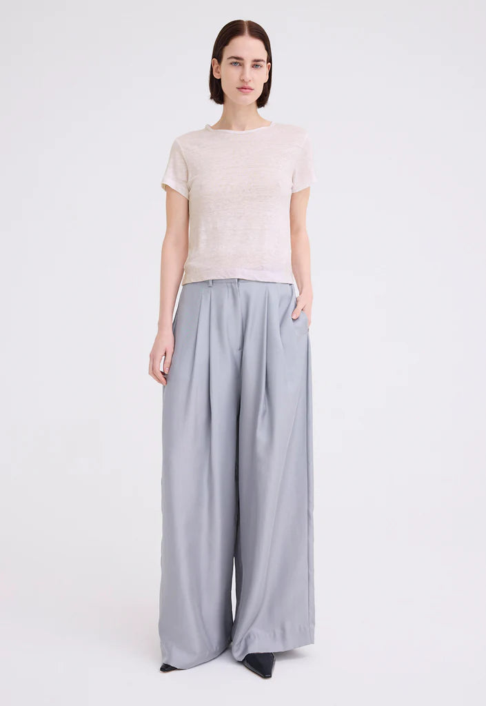 This linen tee is the essential every wardrobe needs. Cut from a soft yet weighty linen jersey in a petite cropped fit - this piece falls just past the waistline with a crew neck and capped sleeves. Contrast the silhouette with relaxed tailoring for an easy off duty look. This piece is designed for a neat fit. For a more relaxed look take the next size up.