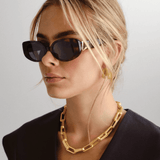 The Helena is a modern take on a classic oval frame with squared edges, creating an elegant and universal shape. This style features signature gold detailed hardware on the temples and is handcrafted from premium tort bio-acetate and paired with a smoke mono polarised lens.
