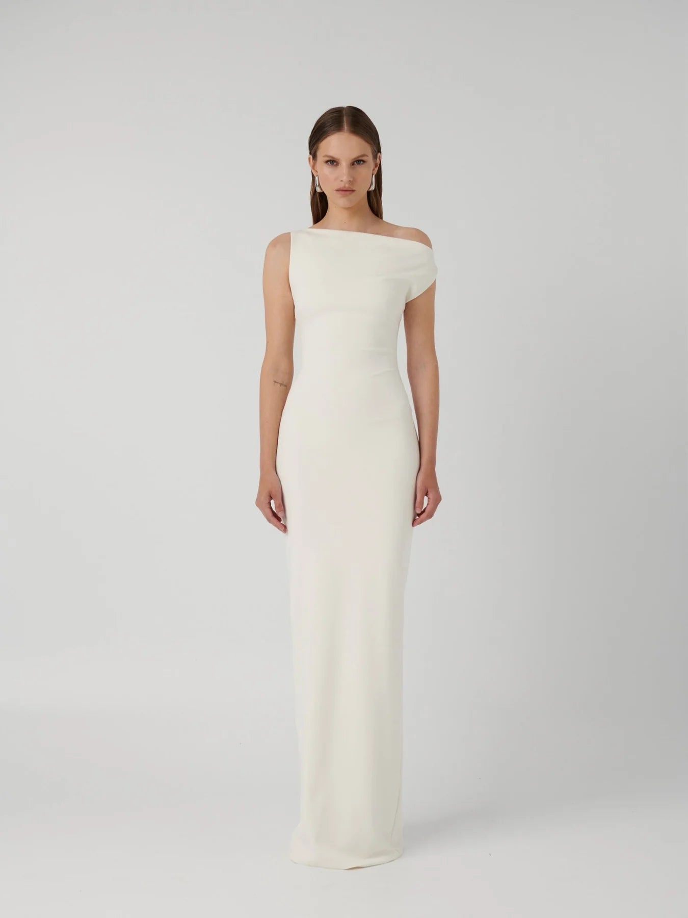 Meet the Inaya Gown, a contemporary silhouette designed for the modern day woman. Crafted with our signature crepe fabrication for the most flattering fit and silhouette on the body. Inaya features a slight off shoulder neckline, accented with a back split for ease of movement and comfort.