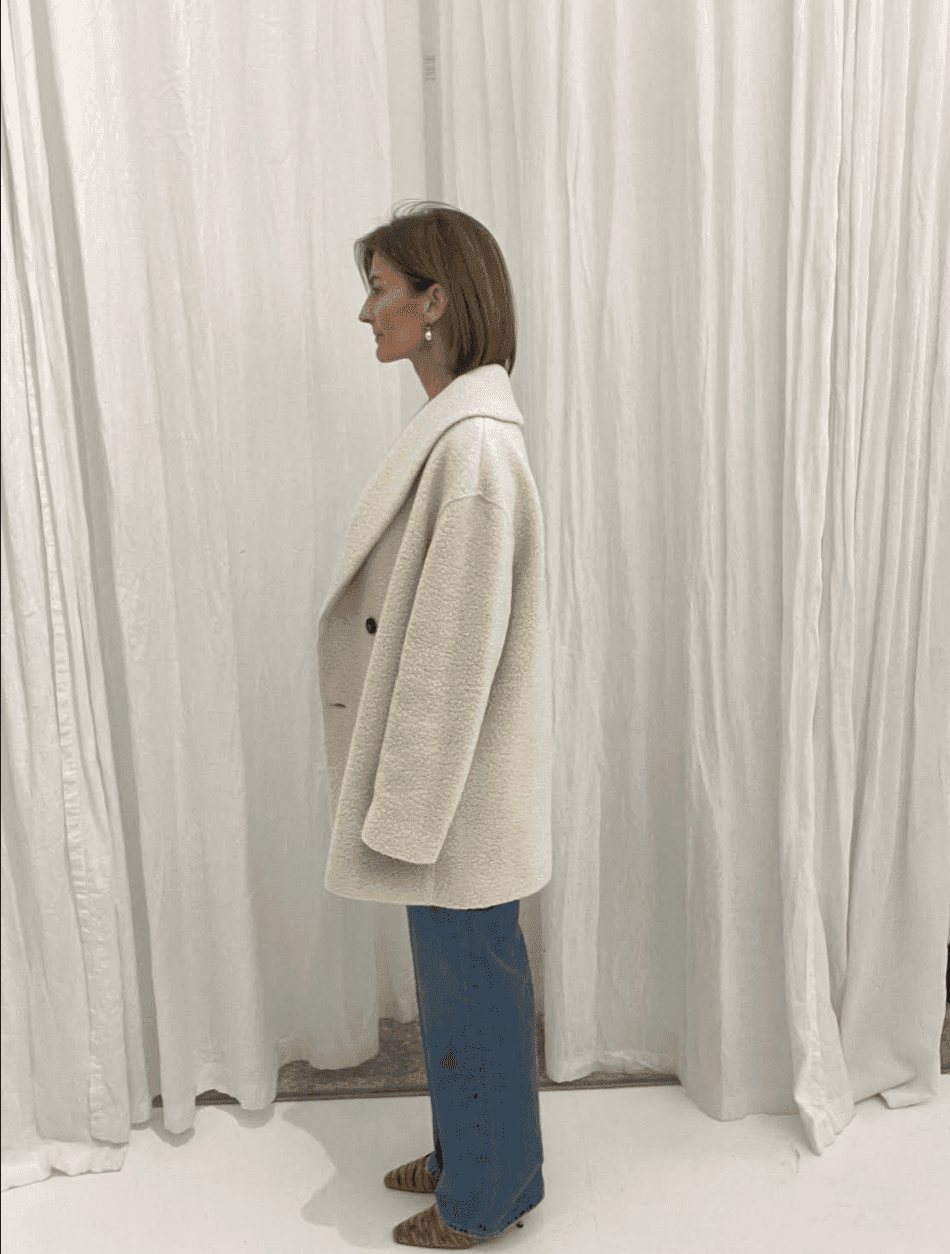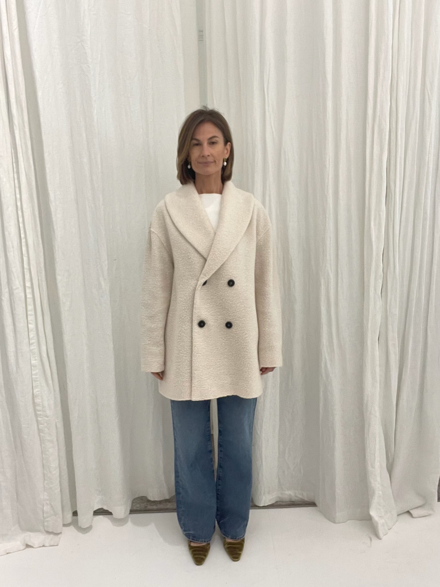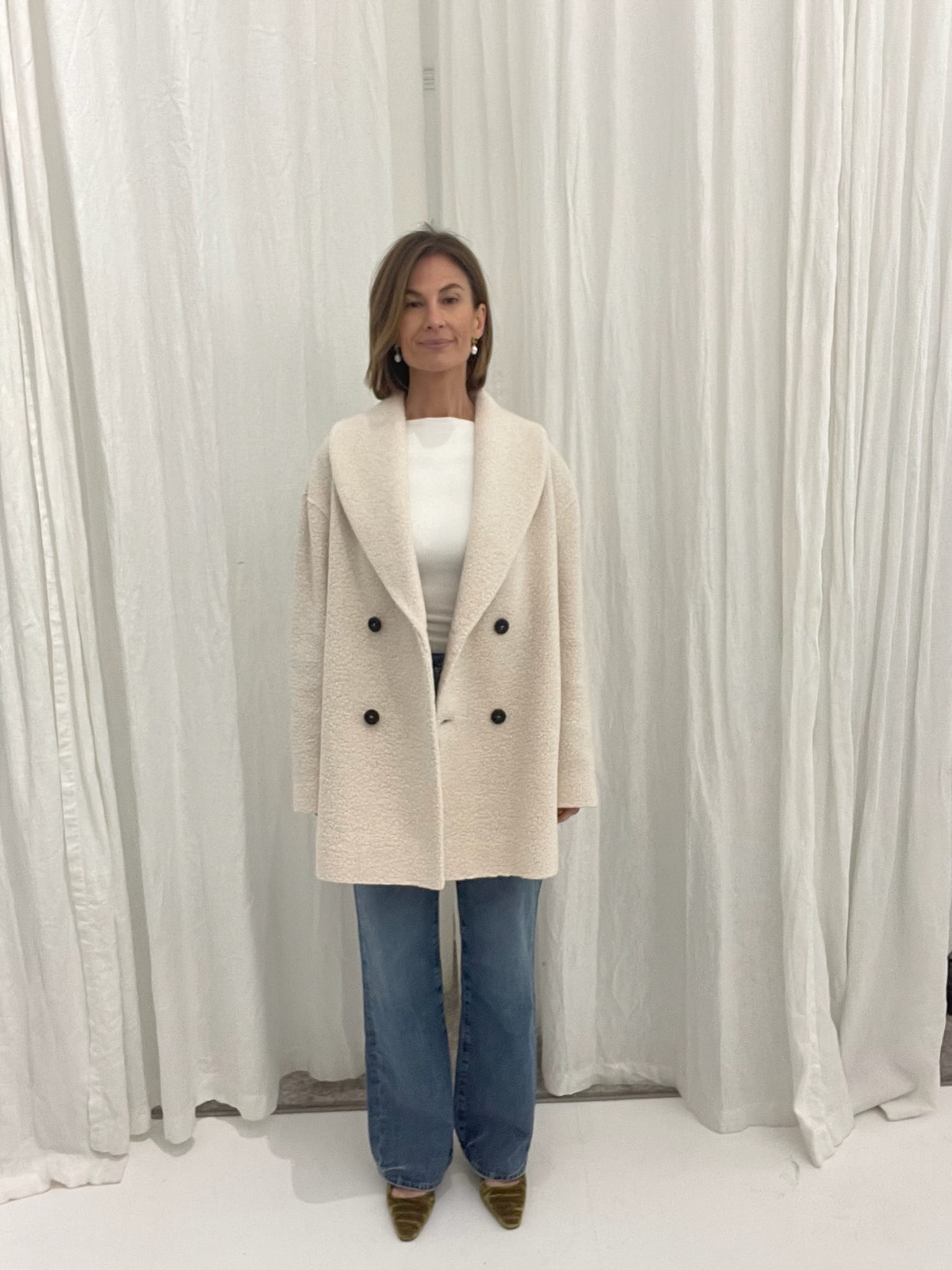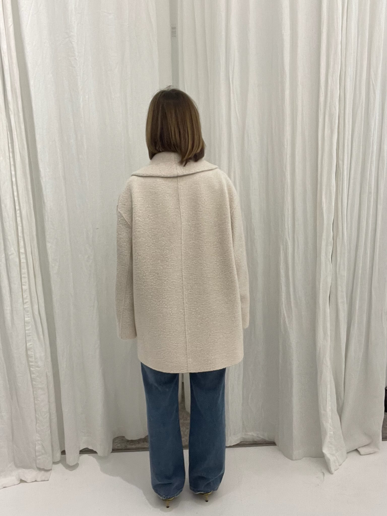 Mid-length shape with a drop shoulder in the soft teddy-bear boucle. Arriving in an luxe cream shade to elevate every outfit.
