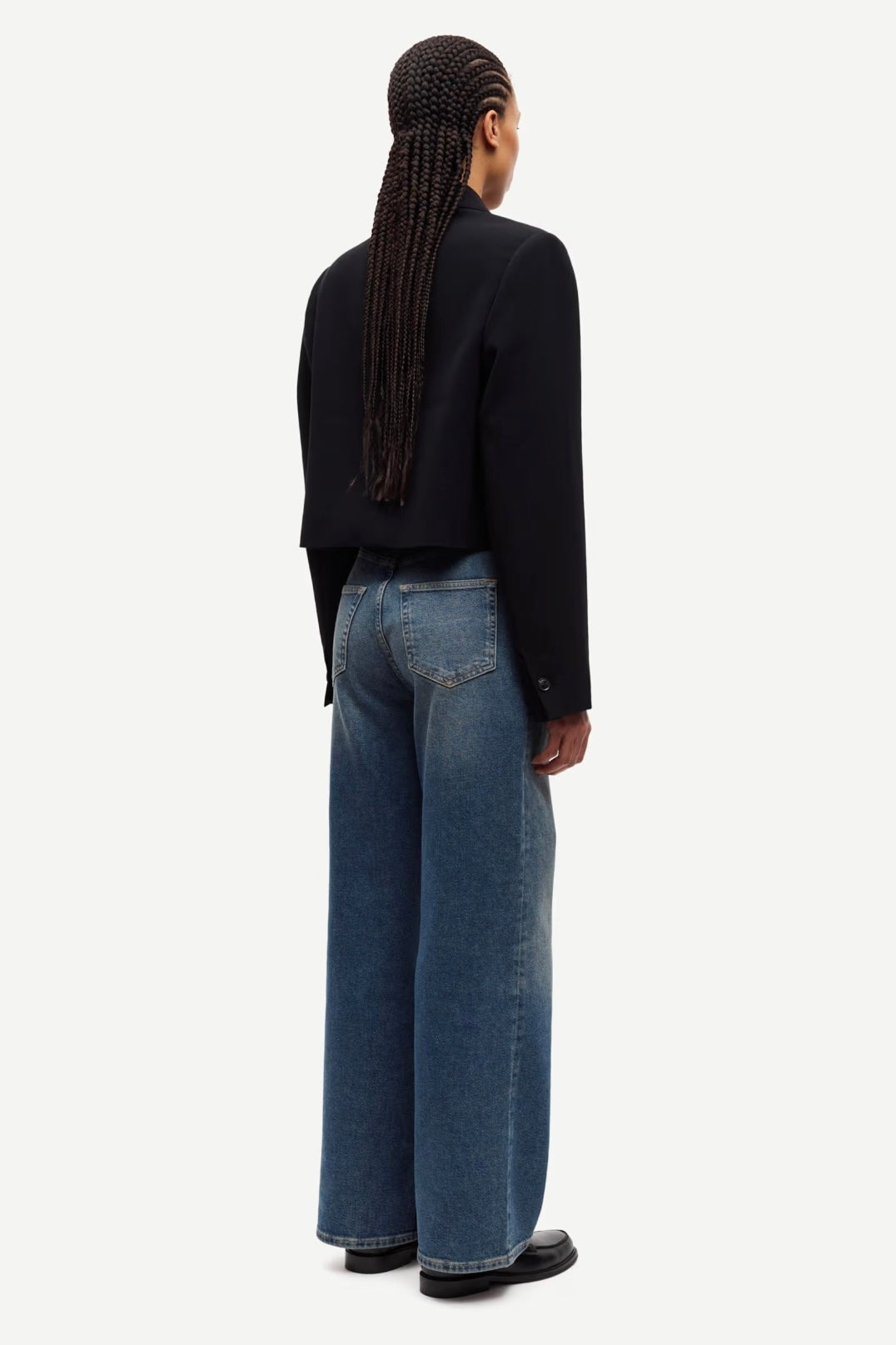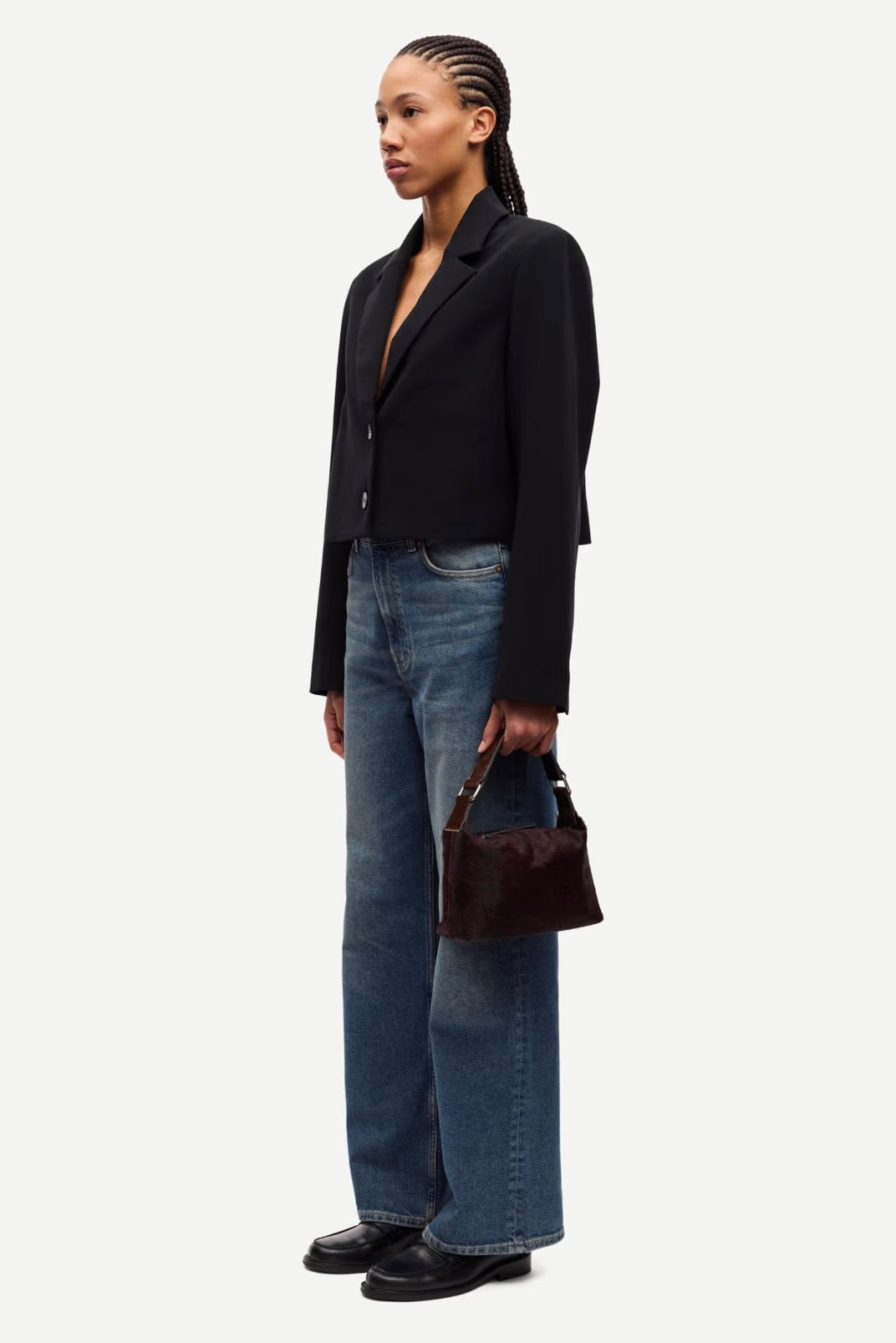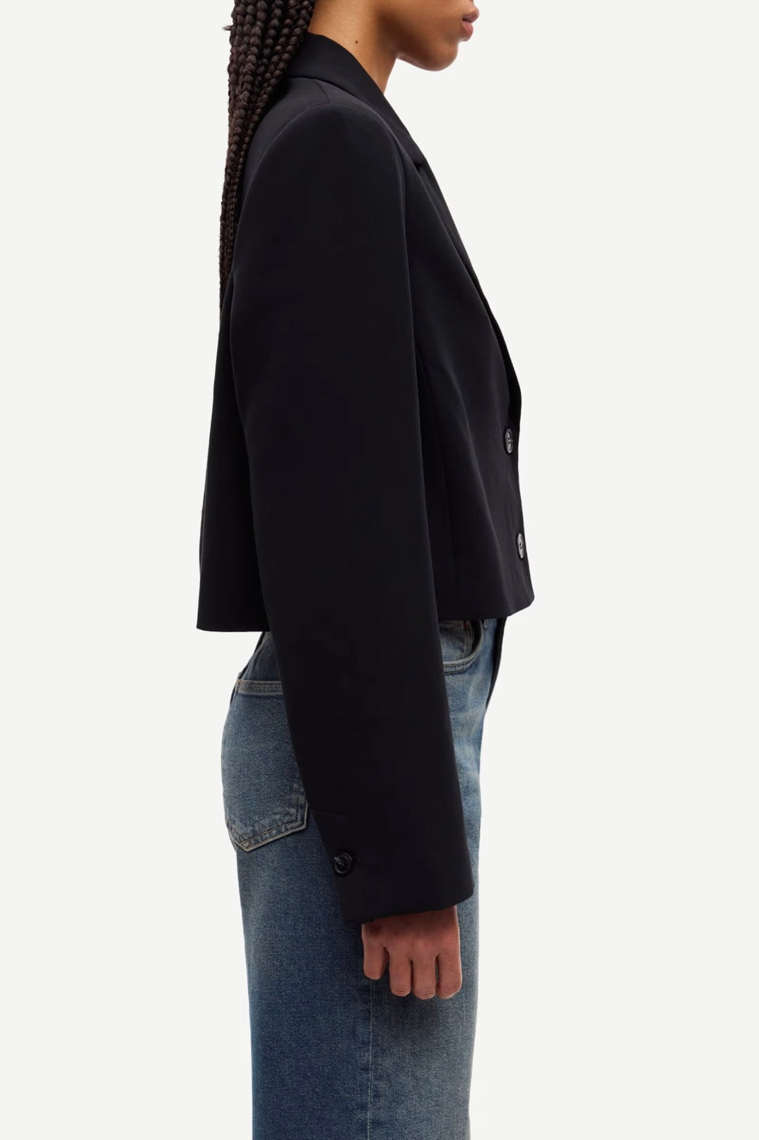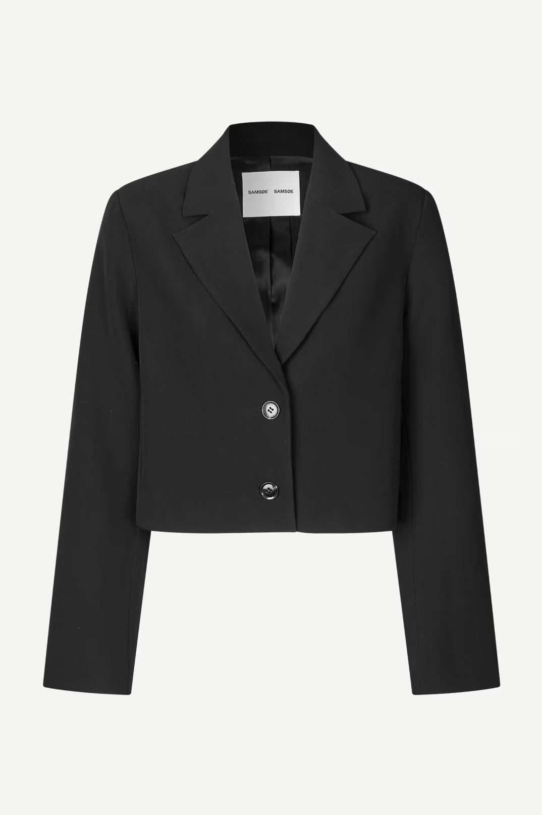 Blazer with a regular fit and cropped silhouette. Single-breasted button closure on the front. Buttoned cuffs. Buttoned double welt pocket on the inside. Shoulder pads. Fully lined. Main material made from an elastic blend with recycled polyester.