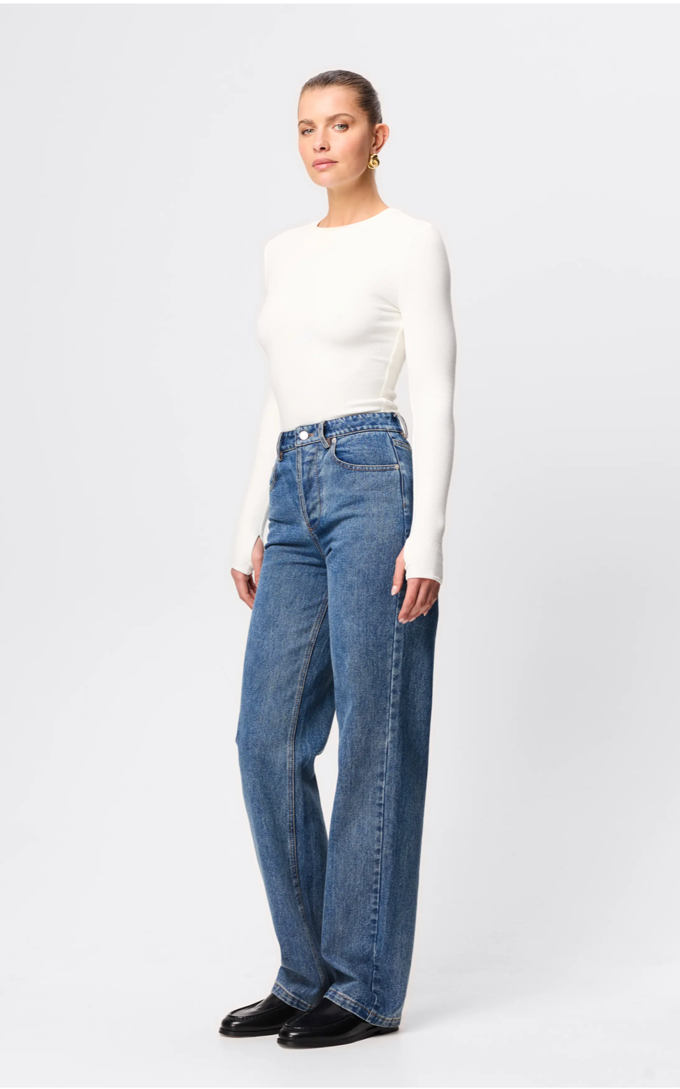 The Brooklyn Top is extremely soft and lightweight top features a high round neckline and long sleeves with thumb openings. The top is conveniently designed to be paired with existing pieces in your wardrobe.