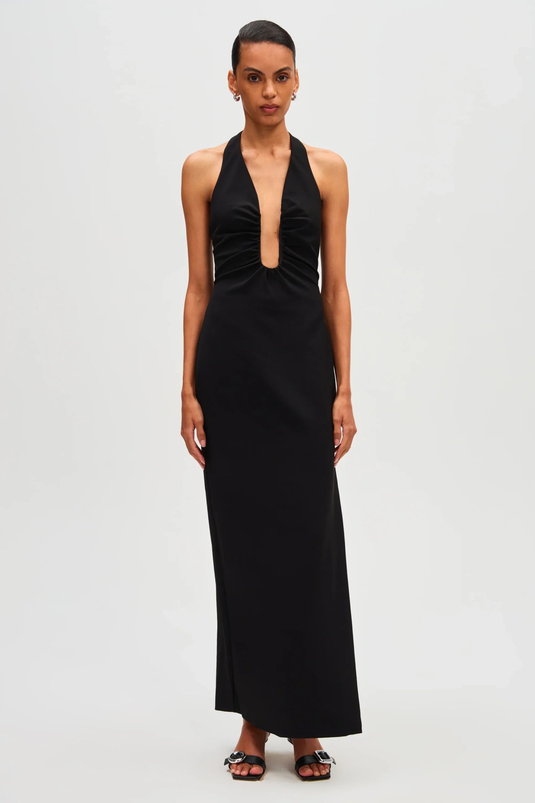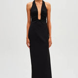 The 'Alusia' Stretch Twill Maxi Dress in Black, minimalistic in design.