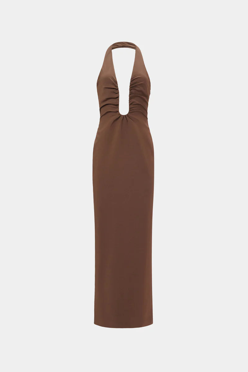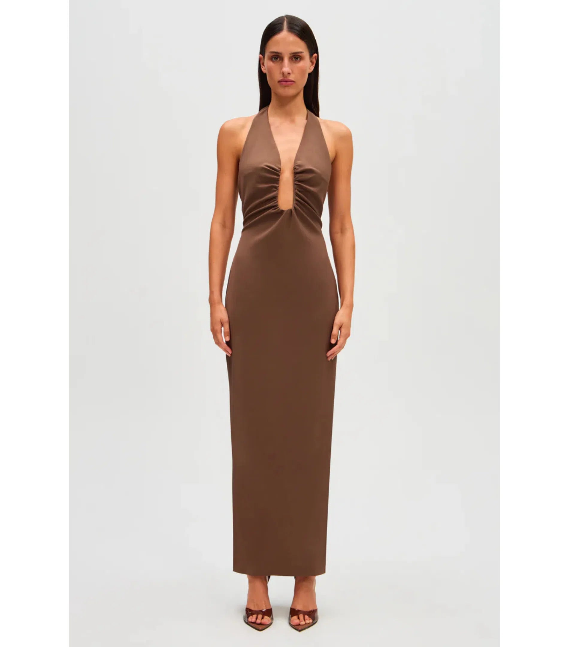 The 'Alusia' Stretch Twill Maxi Dress in Mink, minimalistic in design.