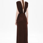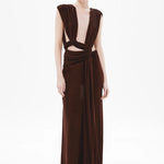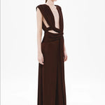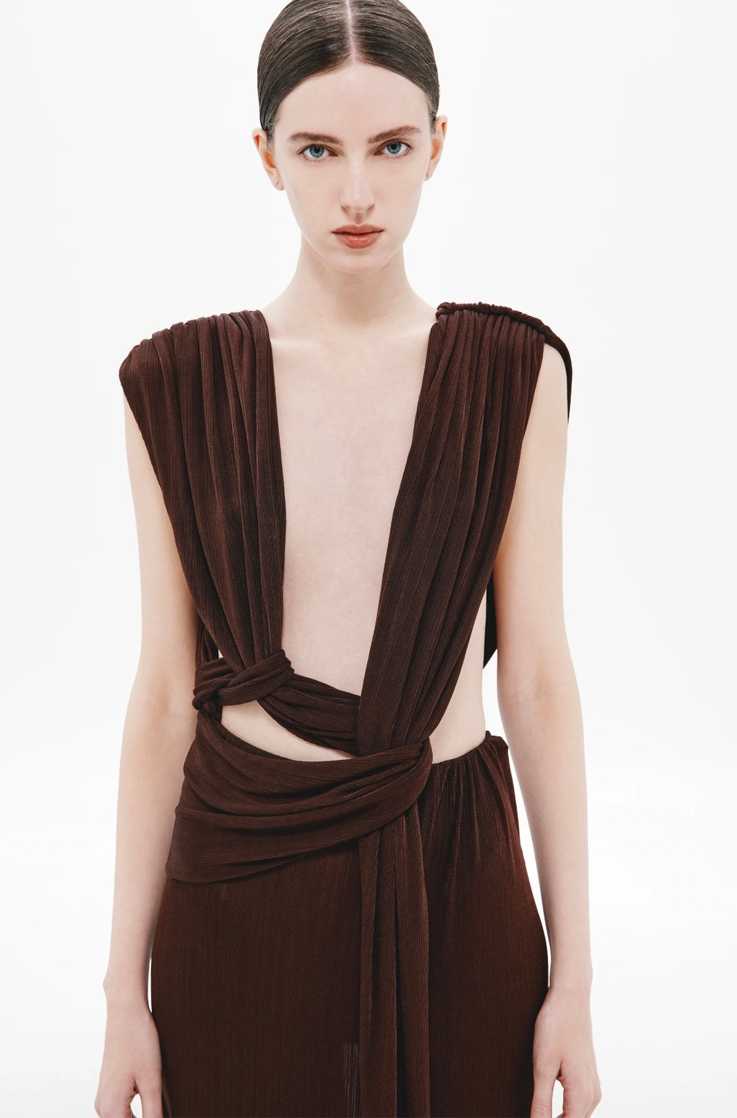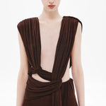 The Naomi Draped Rib Dress features a plunging V-neckline and twisted waist detail, revealing sculptural side cut-outs. The ribbed fabrication offers soft stretch and subtle dimension, enhancing the silhouette while allowing fluid movement. Our Naomi Draped Rib Dress is crafted from biodegradable, plant based acetate fabrication, for a conscious, luxurious feel.
