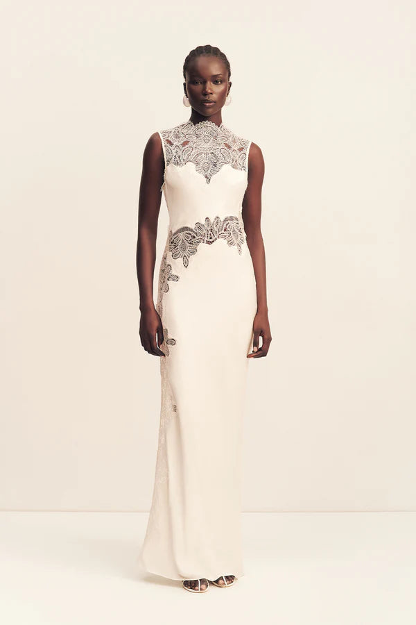 Shona Joy Stratus Lace High Neck Maxi Dress | Ivory