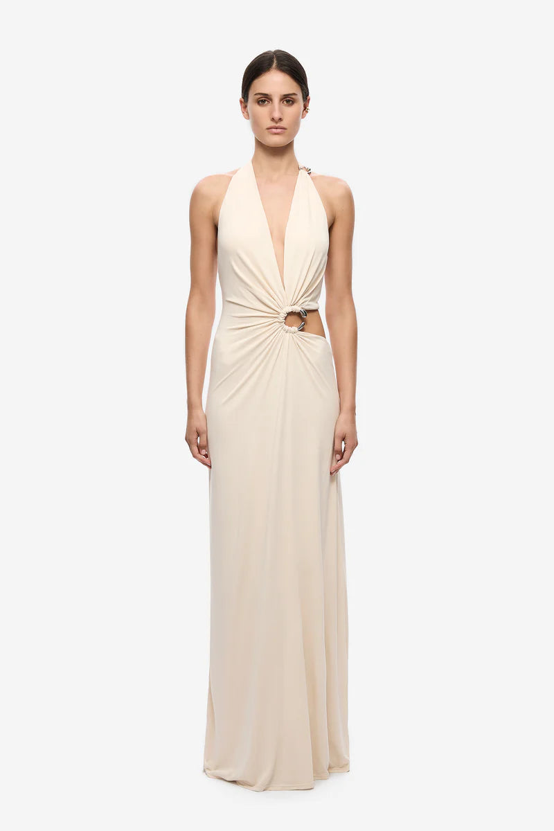 Shona Joy Everly High Neck Maxi Dress| Macadamia